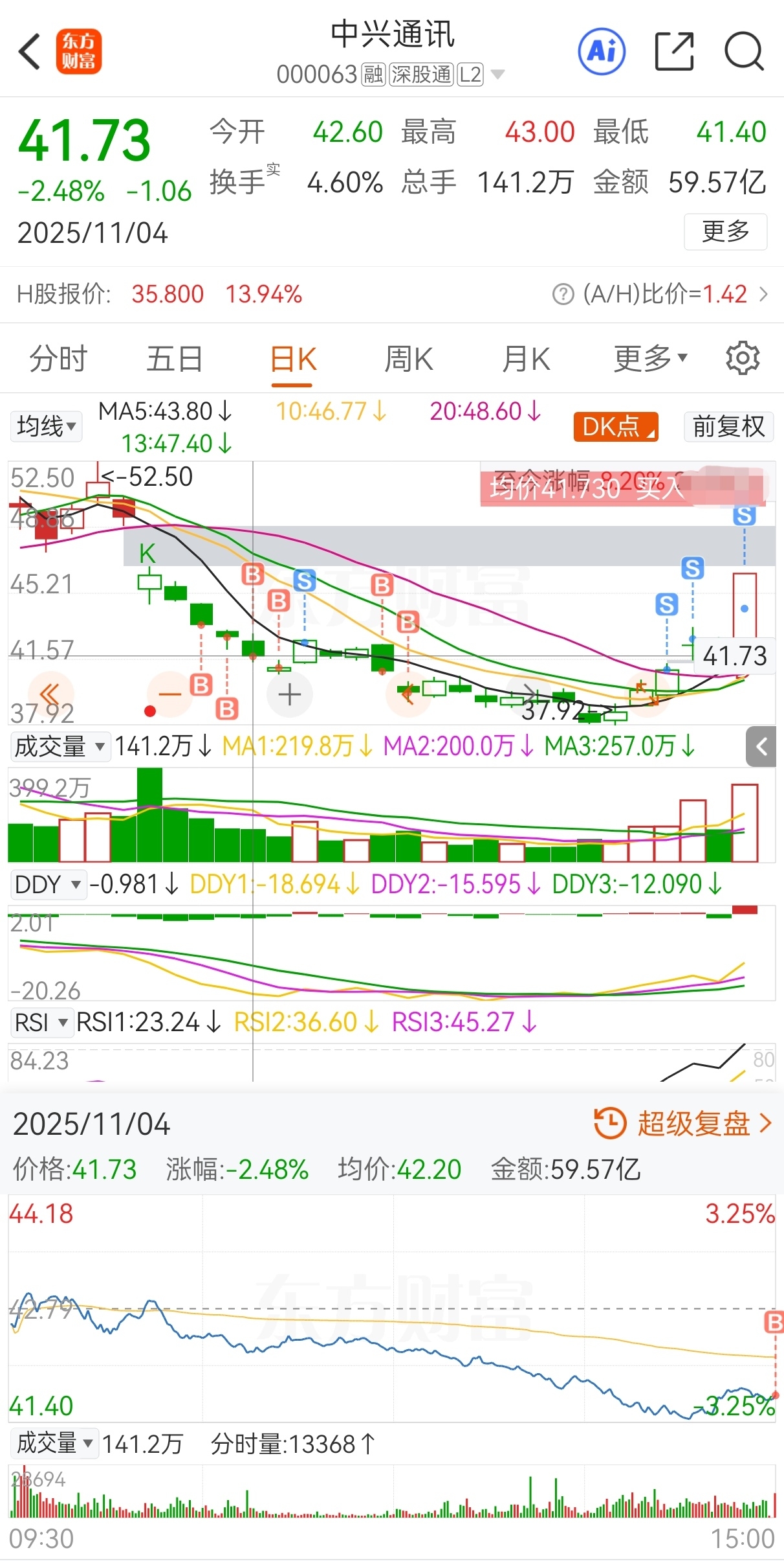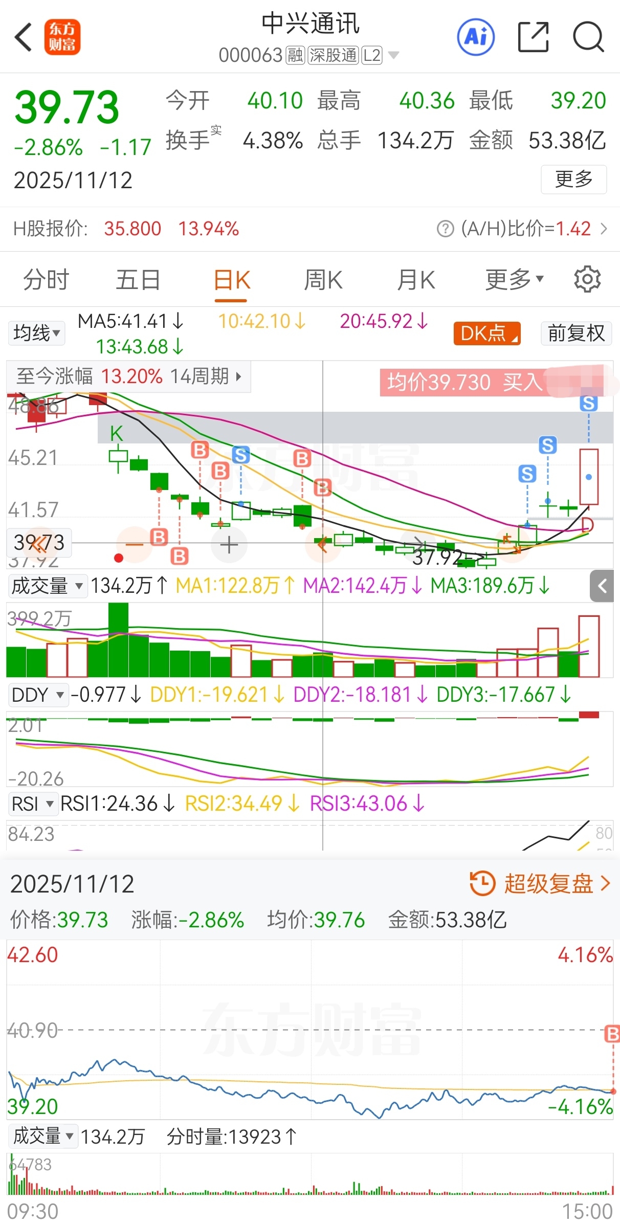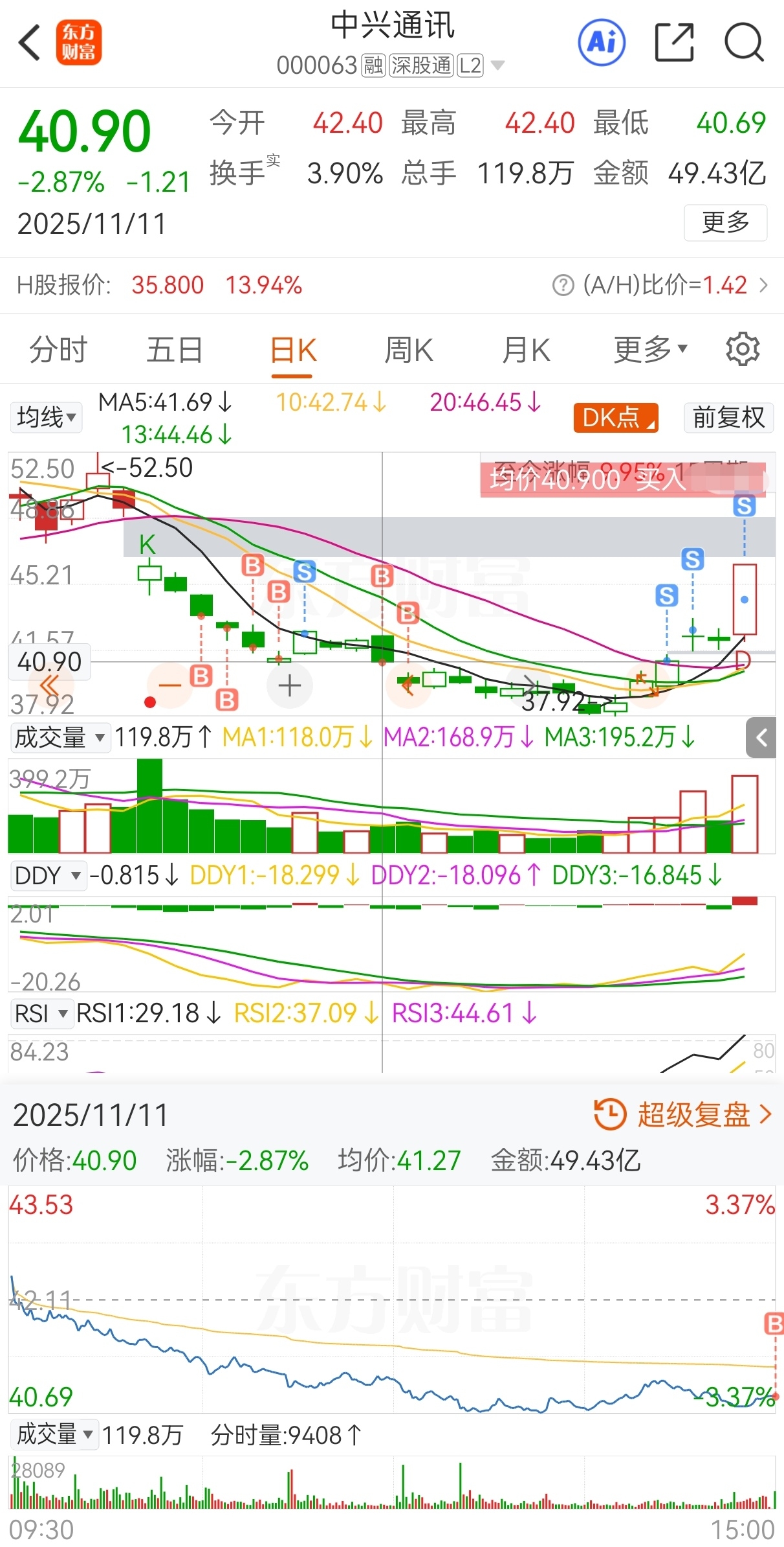 $中兴通讯(SZ000063)$ 原计划今买明卖,实际43.46买,42.79加仓,41.73再加仓,41.1继续加仓,42.49减仓,40.9又加仓,39.73还加仓,40.99再减仓,42.38继续减仓,42.99又减仓,43.99还减仓,44.49卖,实盘短线套利中兴通讯,成功收米走人!