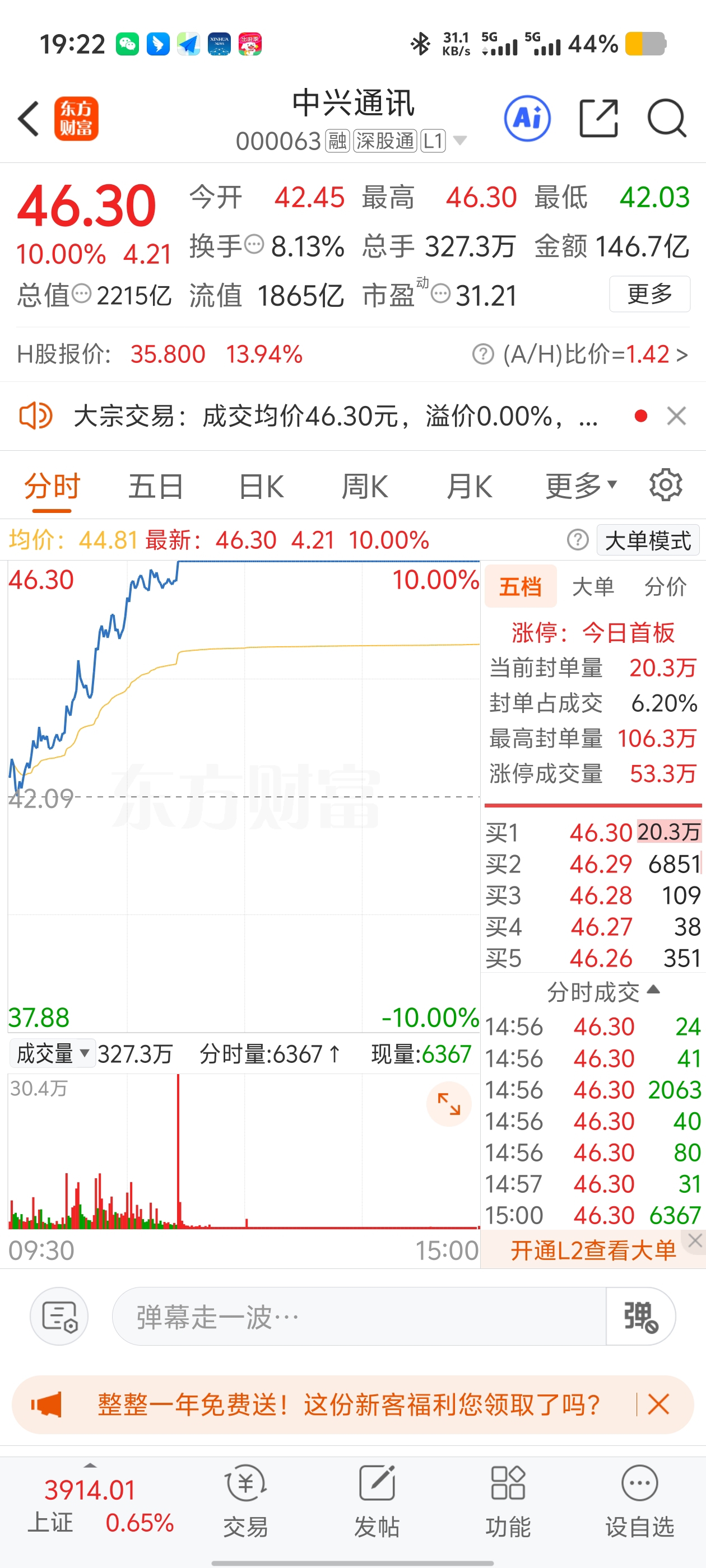 $中兴通讯(SZ000063)$ 港股这个走势 14%,那是不是同样A股明天还要有个涨停