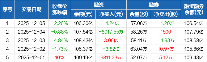 中兴通讯:融资净偿还1.24亿元,两市排名第15(12-05)