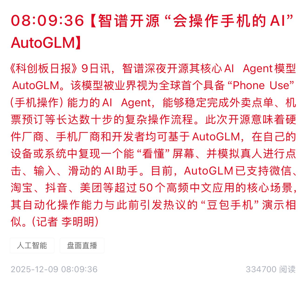 智谱开源ai手机系统,对中兴利好利空?