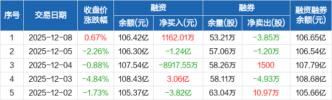 中兴通讯:融资净买入1162.01万元,融资余额106.42亿元(12-08)