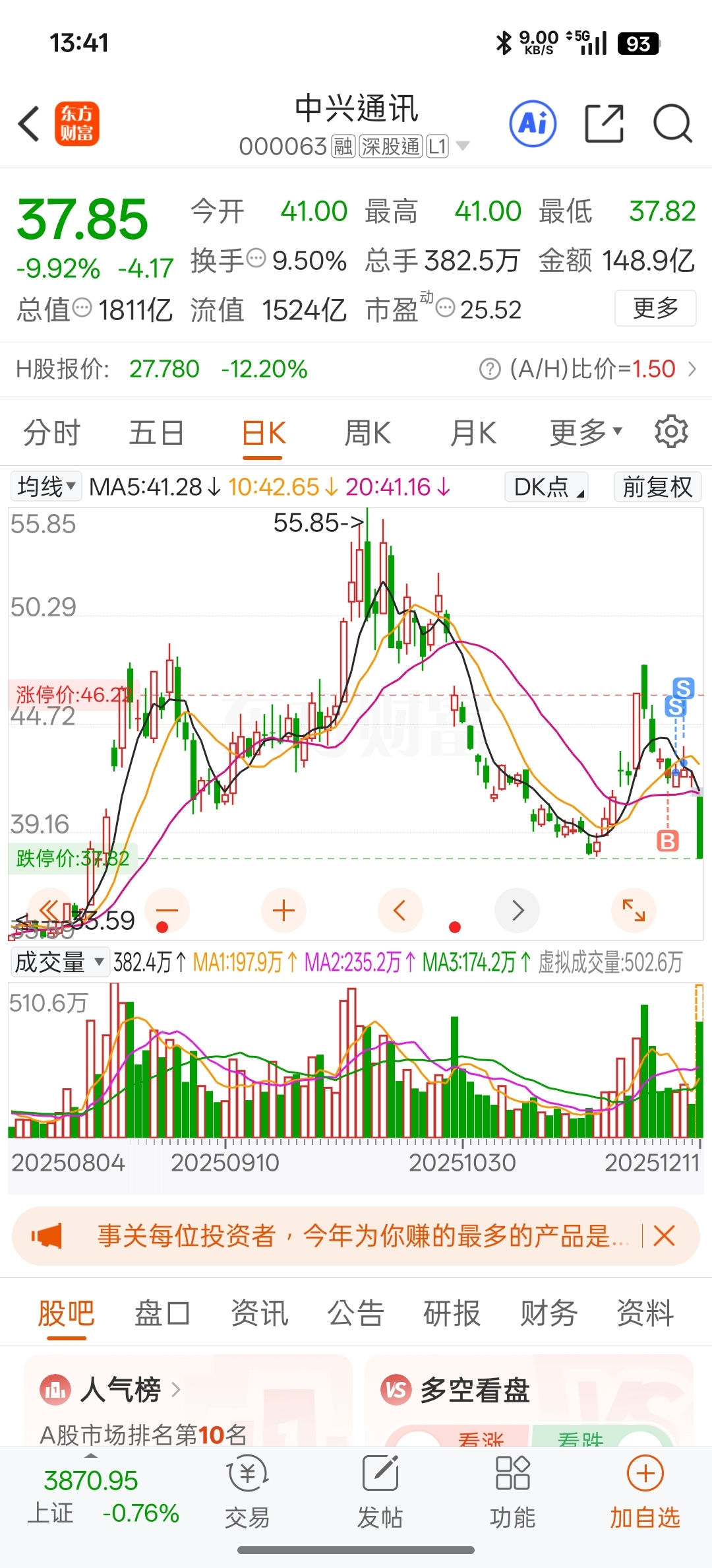 $中兴通讯(SZ000063)$ 走慢一点点就得吃碗大面