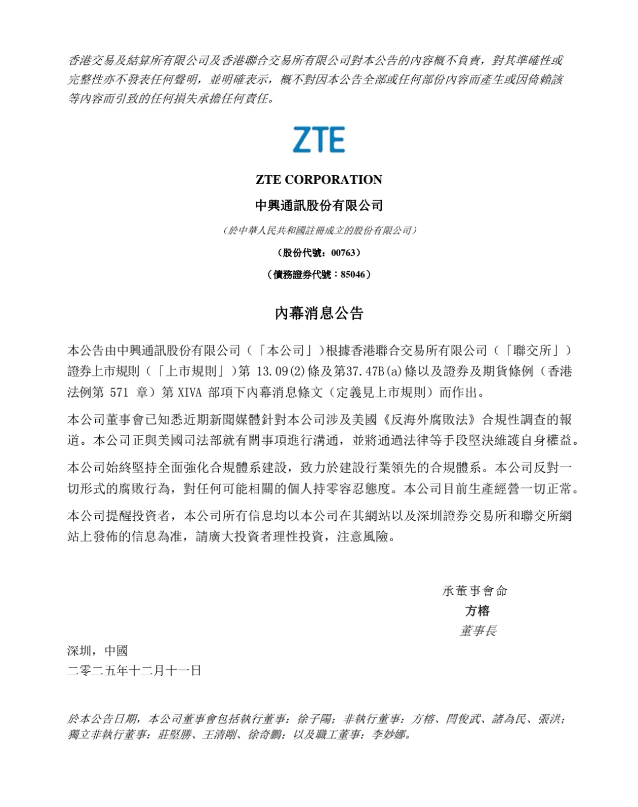 中兴通讯:正与美国司法部就有关事项进行沟通