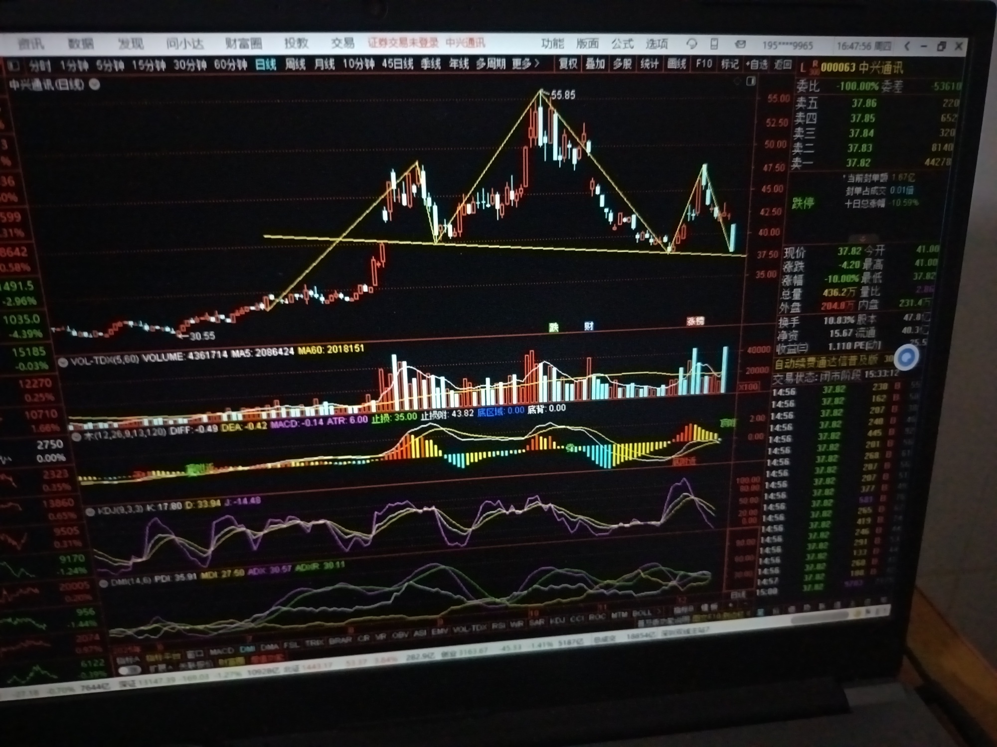 $中兴通讯(SZ000063)$ 头肩顶形态,且md黄白线在零轴下,韭菜们慎重抄底