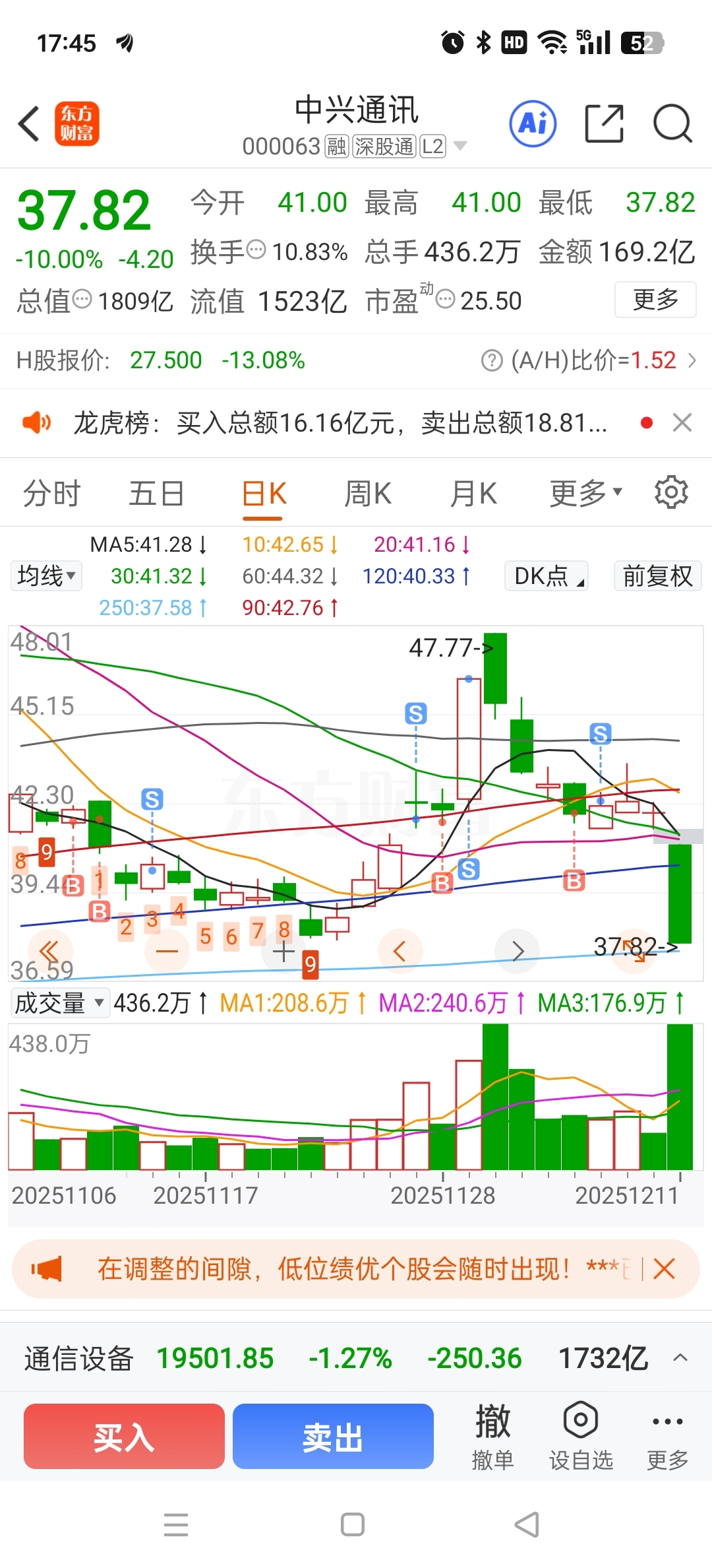 $中兴通讯(SZ000063)$ 狗命差点交待了