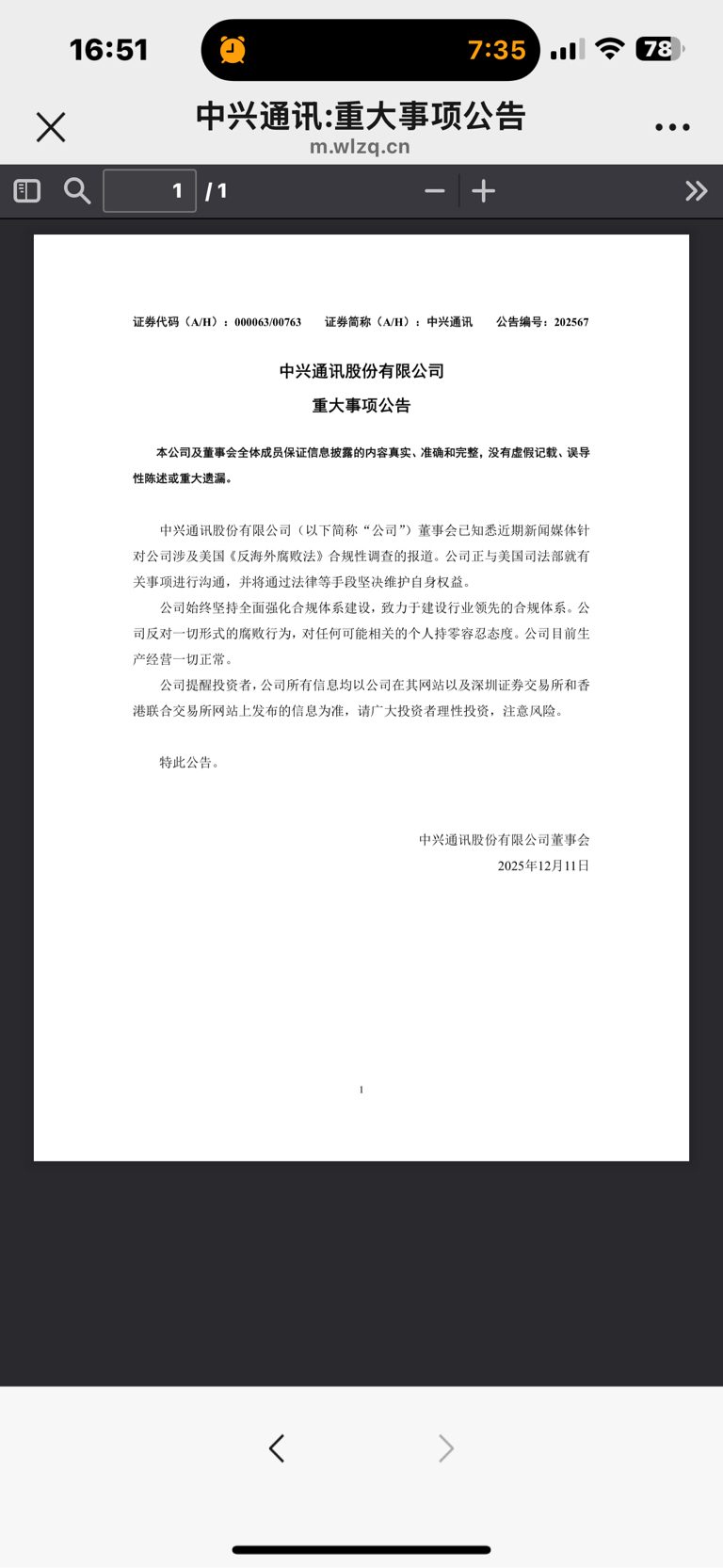 $中兴通讯(SZ000063)$ 公司应该一早就知道了,但是不说,等小作文出来直接引爆,股民受伤严重,这个真要中兴赔钱的