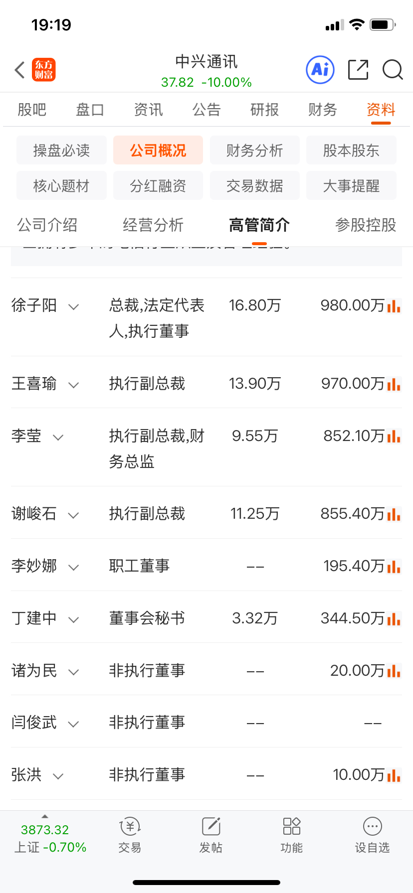$中兴通讯(SZ000063)$ 高管特高工资,特低持股,股票涨跌跟高管利益关联度小,与广大散户投资者利益不一致。看看联想集团,高管工资高的可怕,股票多少年了收益很烂