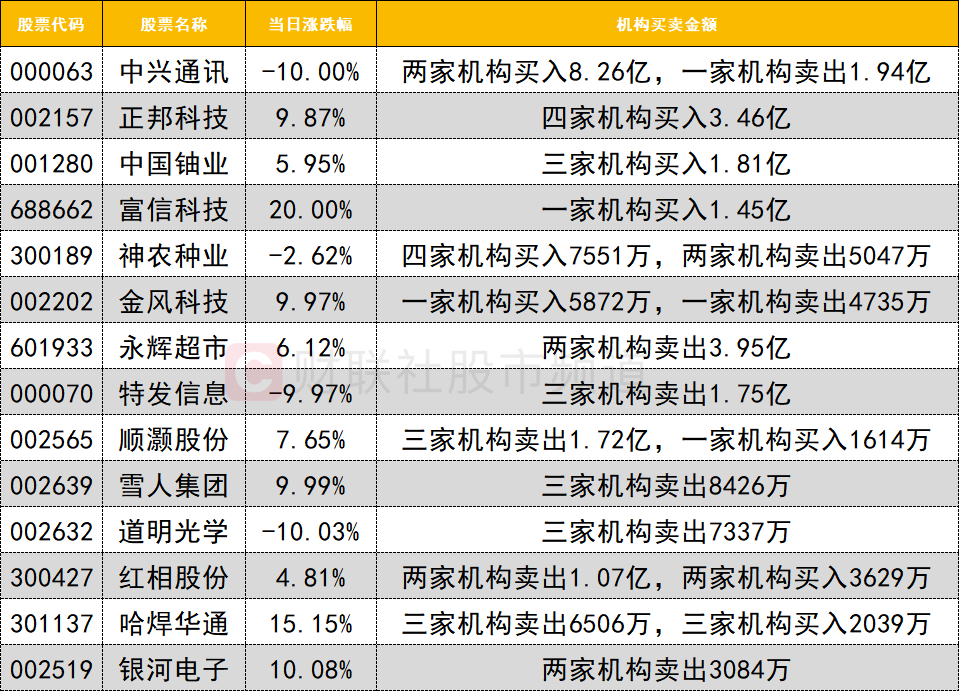 $中兴通讯(SZ000063)$ 两个机构强势买入8亿多元的股票