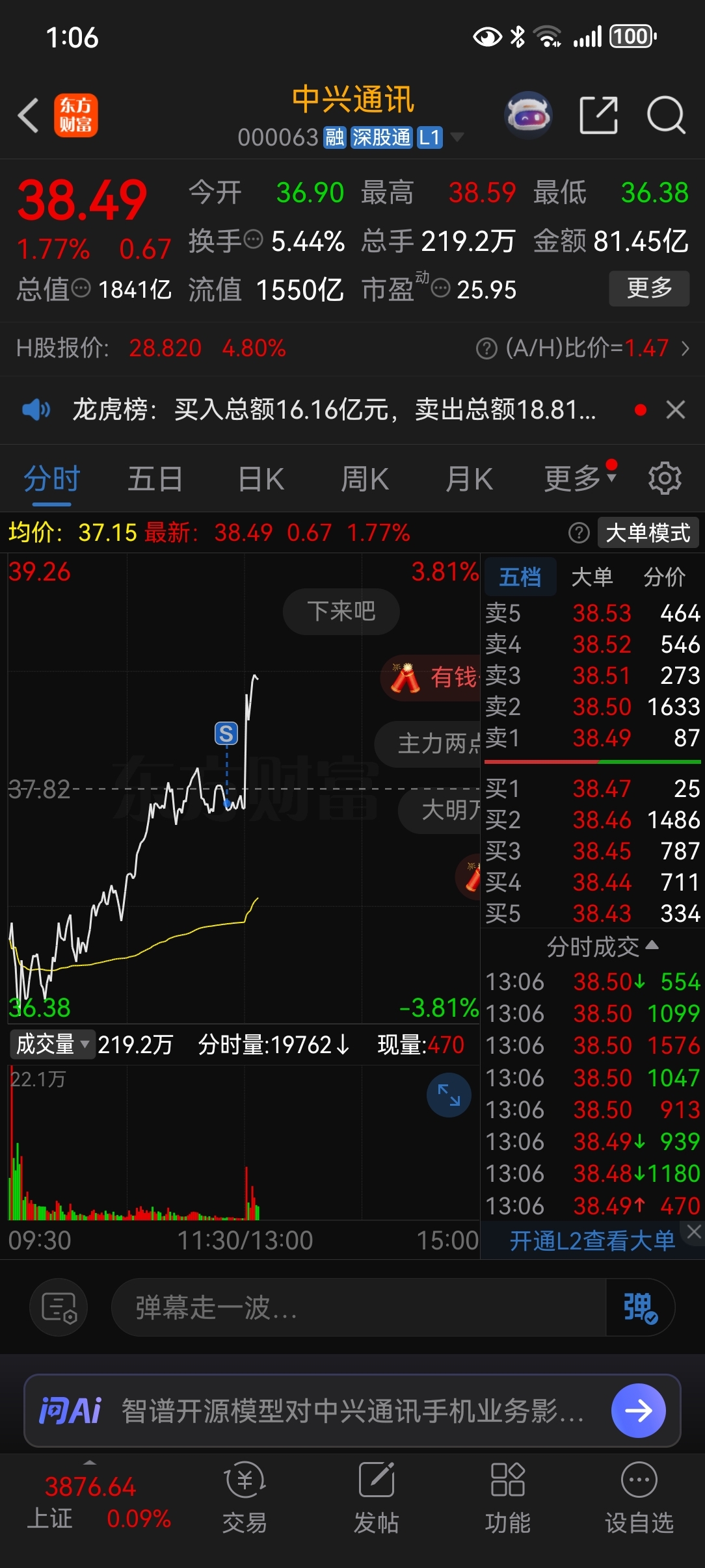 $中兴通讯(SZ000063)$ 昨天都忍住没割肉,今天割了
