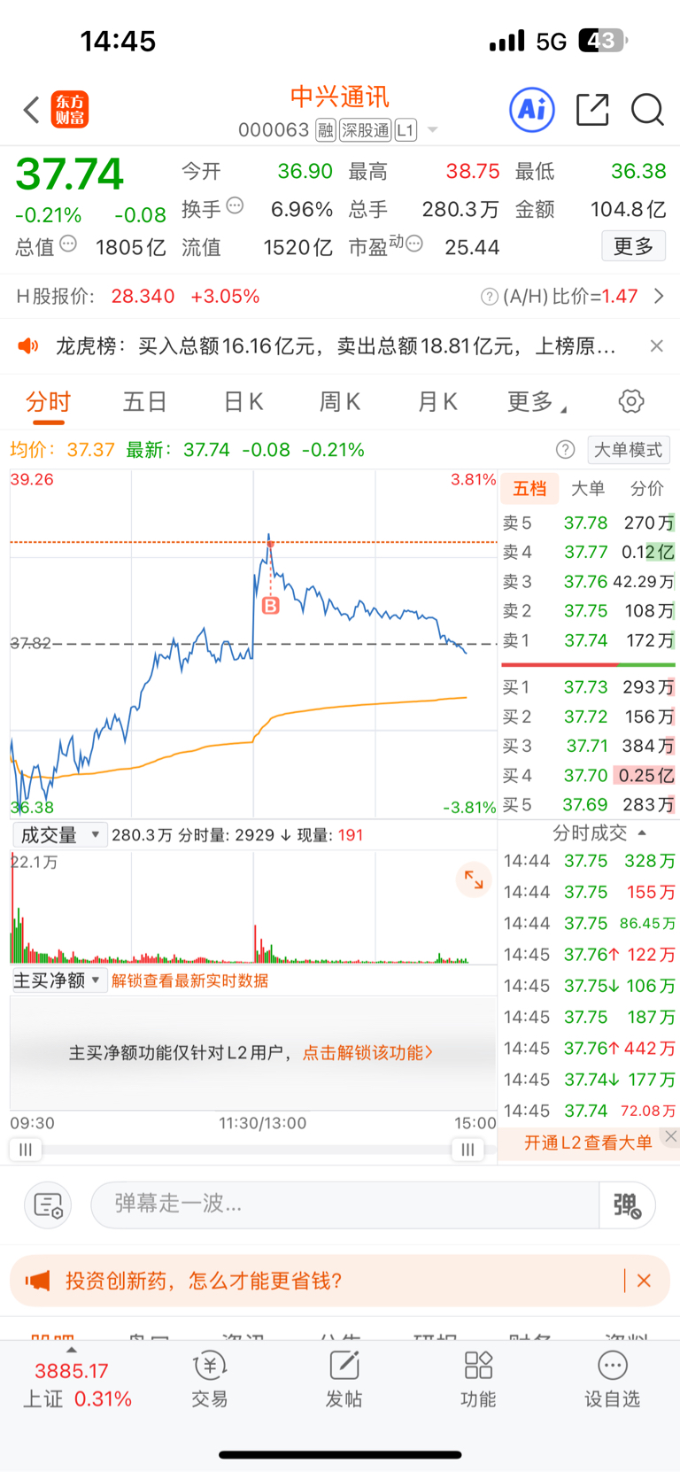 $中兴通讯(SZ000063)$ 手怎么这么贱!