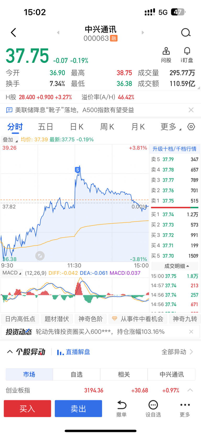$中兴通讯(SZ000063)$ 下周一 我会回来的