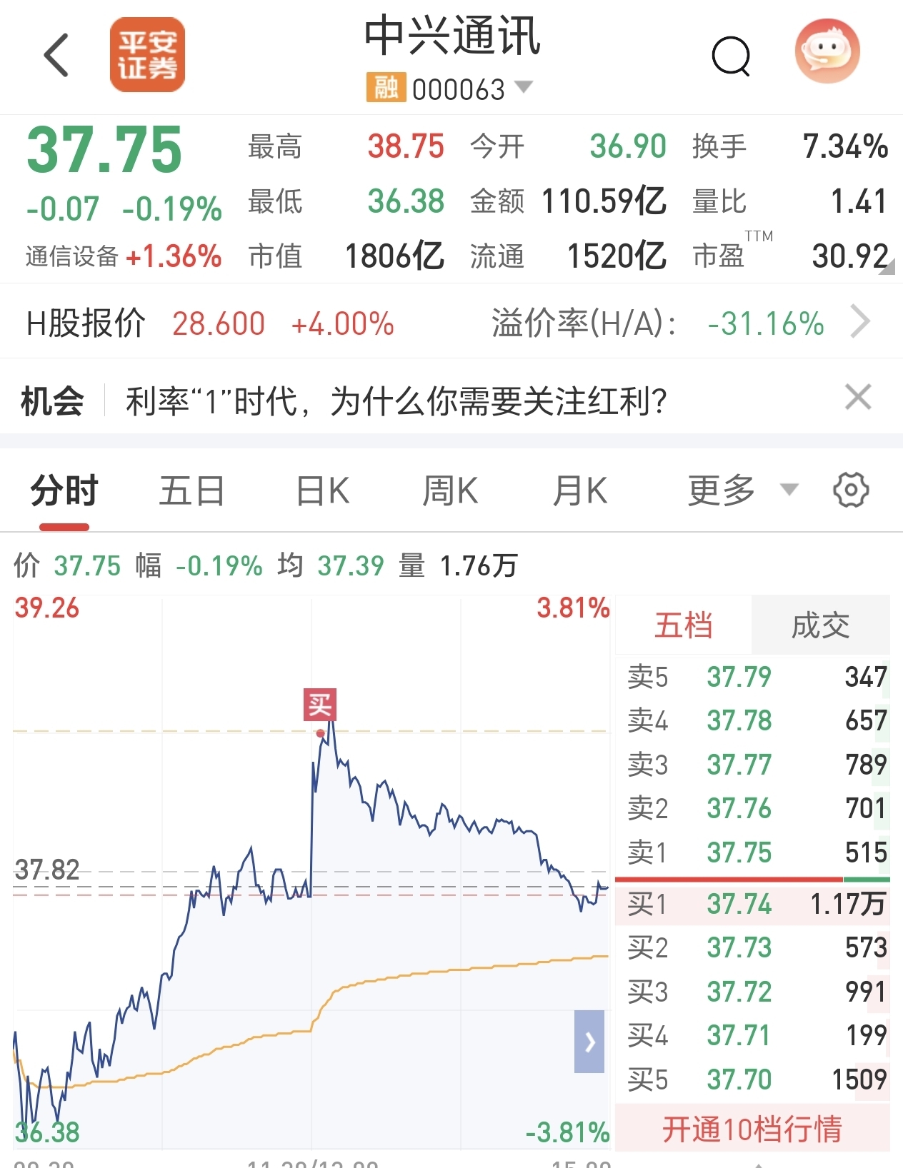 $中兴通讯(SZ000063)$ 最高点进的,还能回本吗