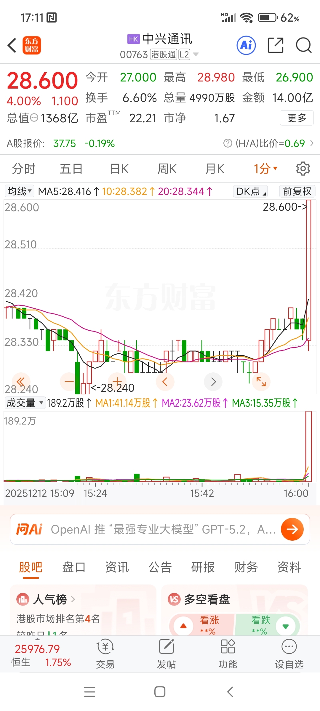 $中兴通讯(SZ000063)$ 港股行通讯最后一分钟有大资金拉升将近一个点,这难道不是偷袭吗?