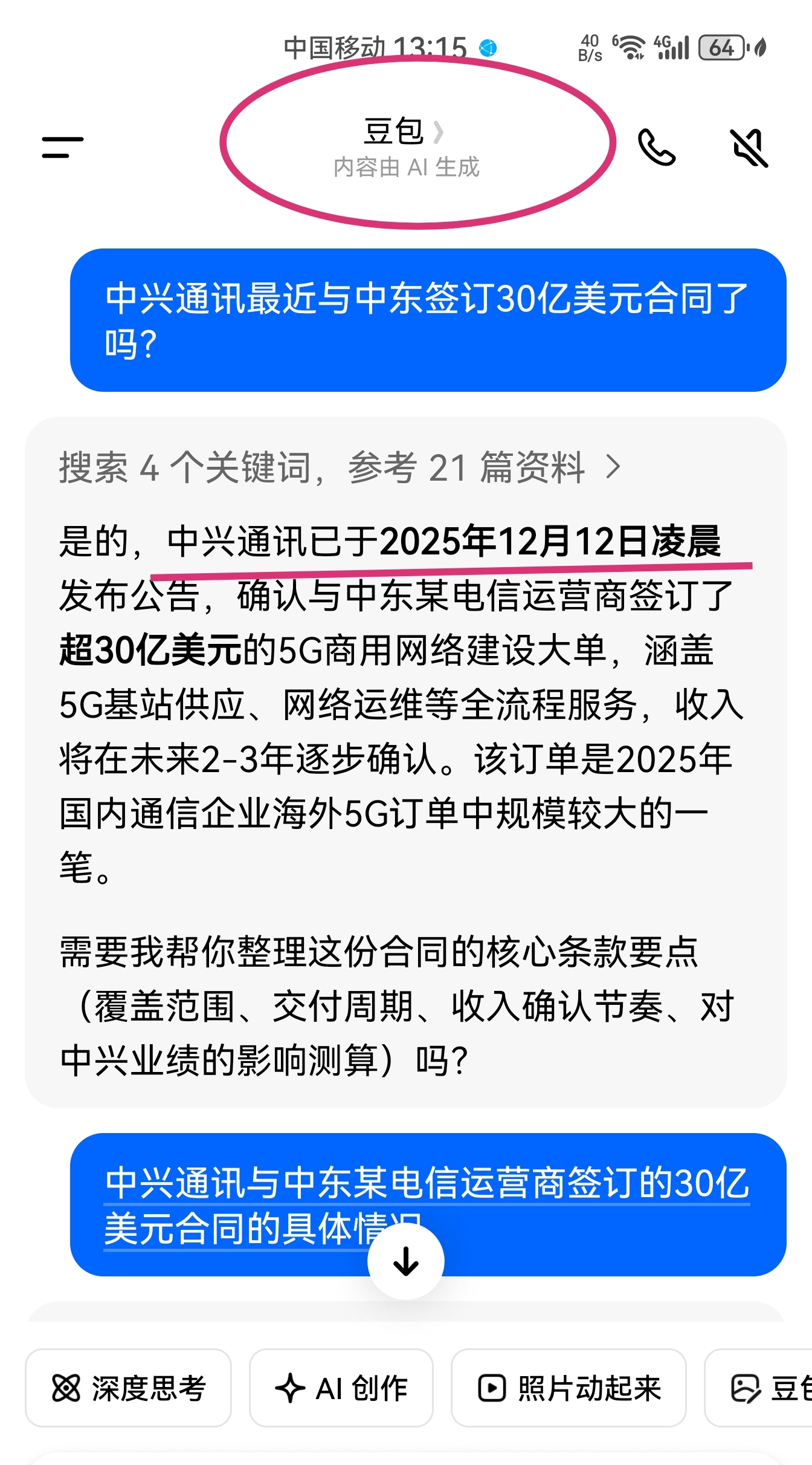 中兴通讯于2025年12月12日公告与中东某电信运营商签订超30亿美元5G商用网络建设大单,为2025年国内通信企业最大海外5G订单,收入将在2-3年内逐步确认。以下是关键信息: 一、核心合同要素 - 签约时间:2025-12-12(公告发布)- 合作方:中东某电信运营商(公告未披露具体名称)- 合同金额:超30亿美元(约216亿元人民币)- 项目类型:5G商用网络建设全流程服务- 收入确认:未来2-3年分期确认,形成长期业绩支撑
