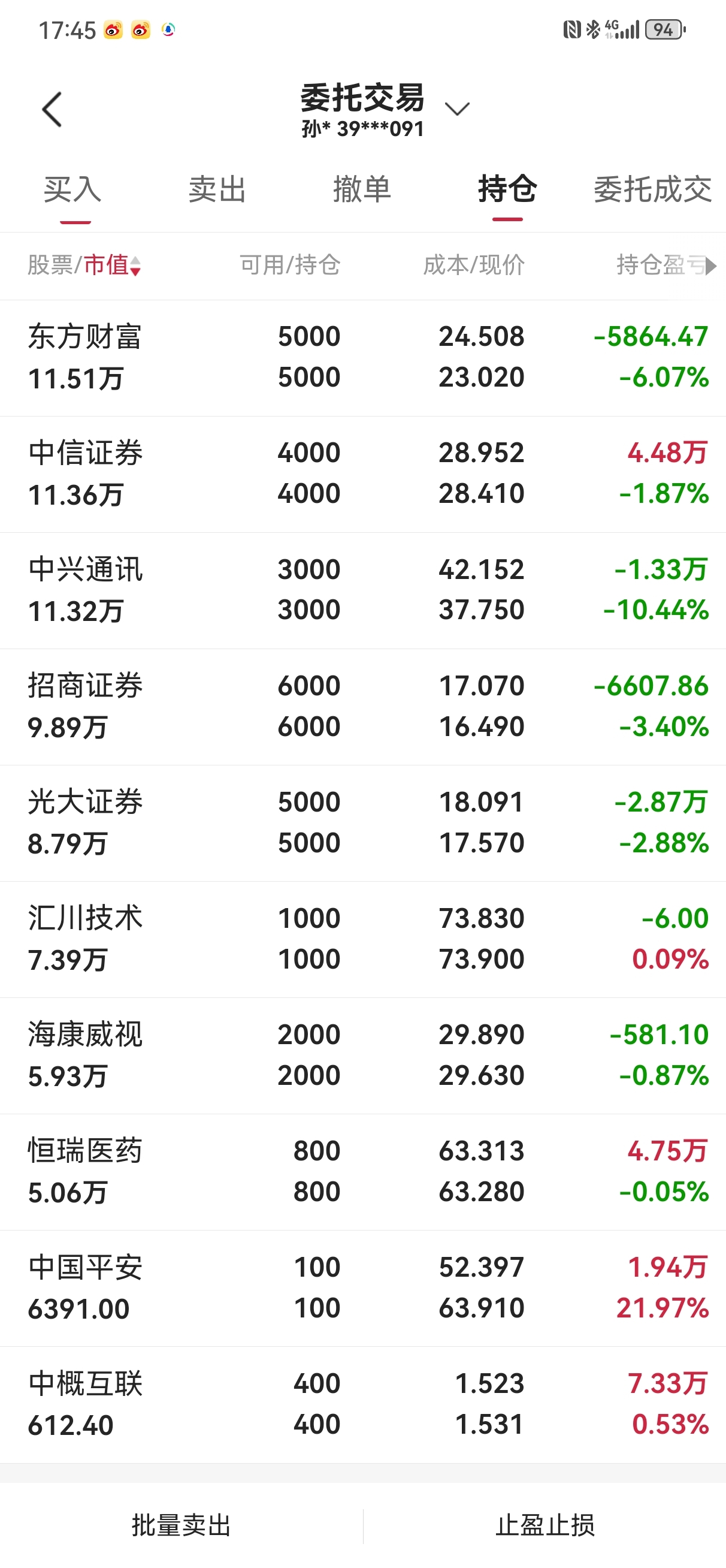 $中兴通讯(SZ000063)$ 大家看看,我的帐户惨不忍睹,想来玩股市的要有心里准备,做好心理准备,以身说教,能不玩别来了