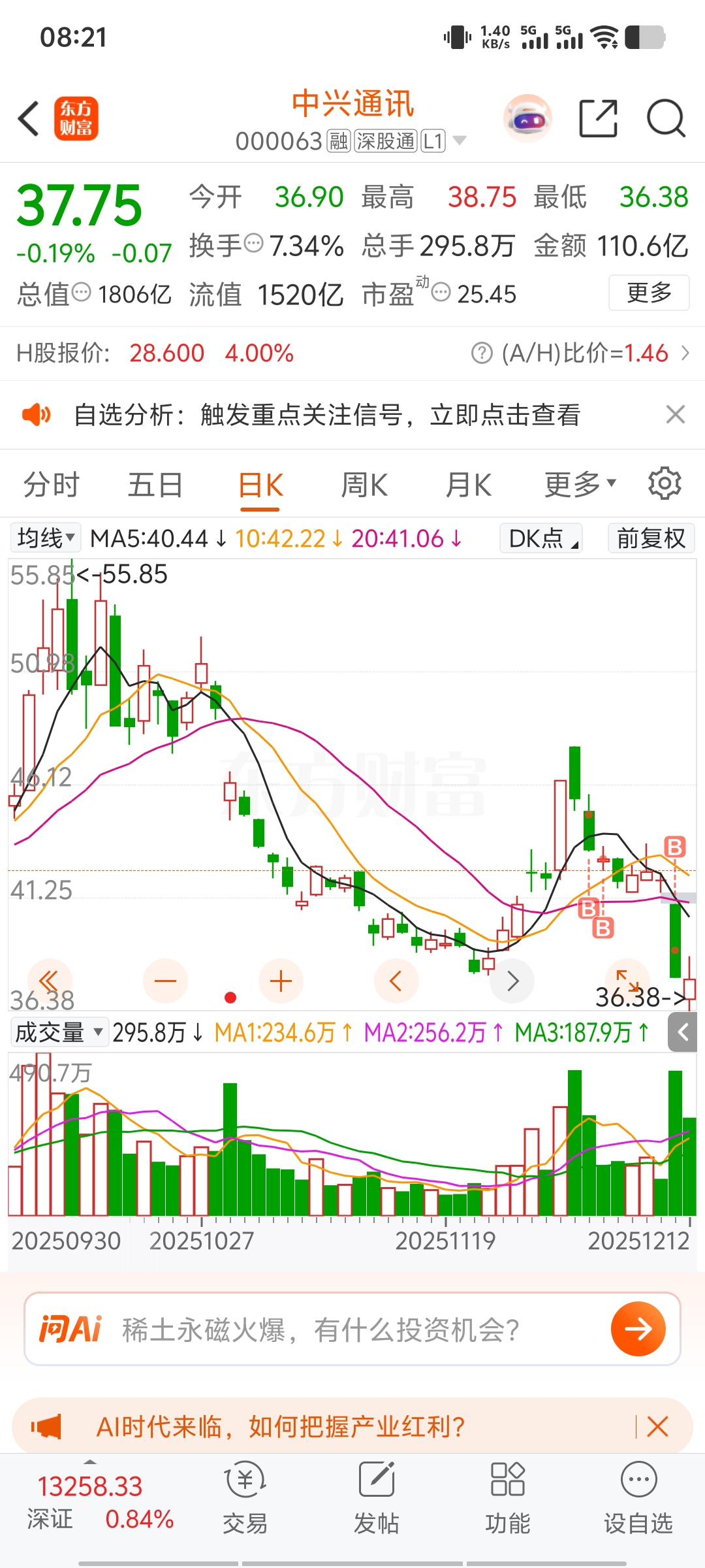 $中兴通讯(SZ000063)$ 让我回本好不好
