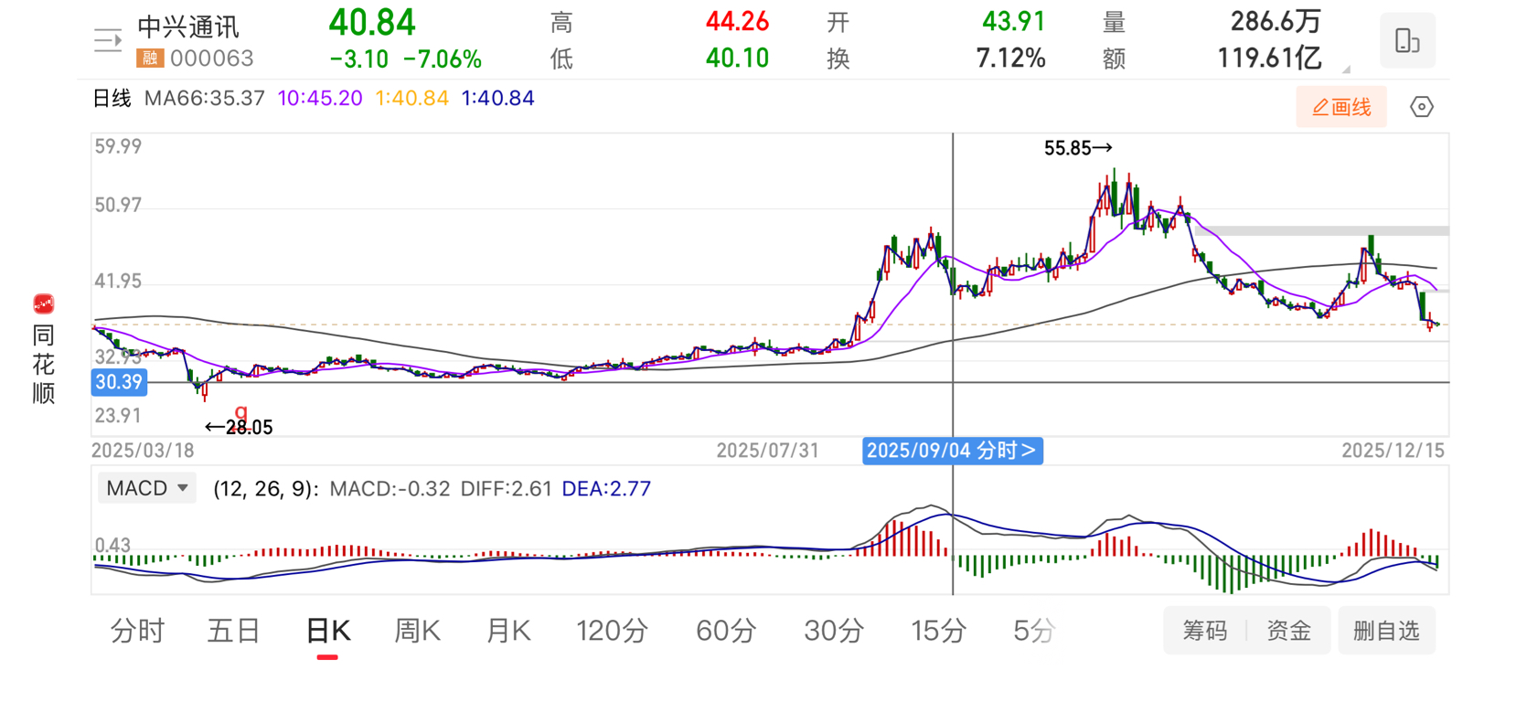 细看中兴股价走势,每次大跌都是最好的上车点,耐心持有
