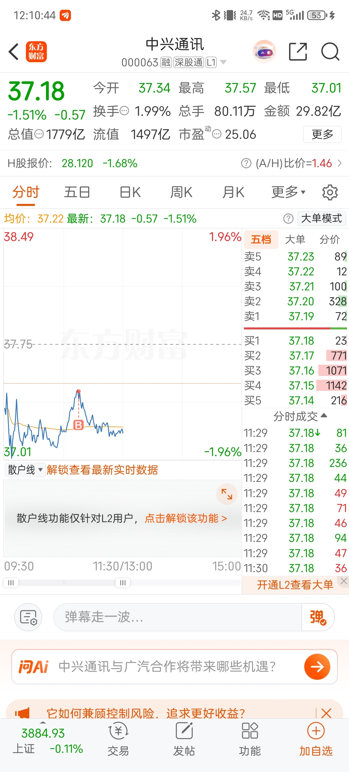 $中兴通讯(SZ000063)$ 买塔尖上了