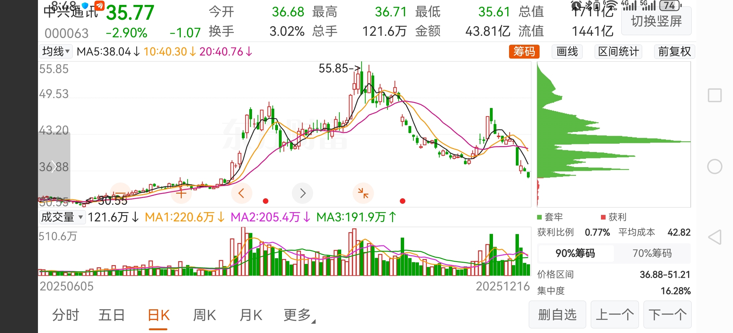 $中兴通讯(SZ000063)$ 50的筹码是一动不动啊,你们不动怎么涨