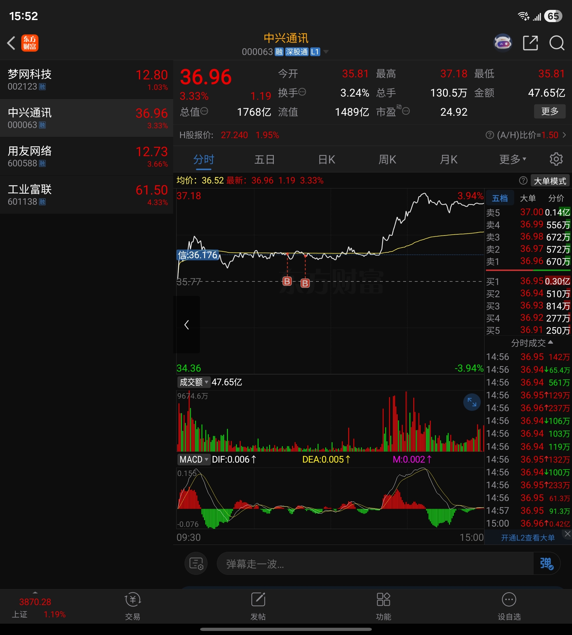 $中兴通讯(SZ000063)$ #收盘点评# #强势机会# #实盘记录# 期待
