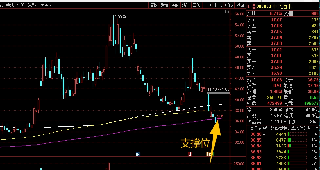 $中兴通讯(SZ000063)$ 趋势走得很差,连续大幅杀跌的回落,速度快且幅度大,目前来看没啥参与的机会,接下来短线主要看最后一条大均线36.53位置的支撑情况,能稳住就还能看震荡横盘动作,但有效跌破就又要继续回落了,没啥戏,整体上管住手,不要加仓、。#收盘点评# #复盘记录#