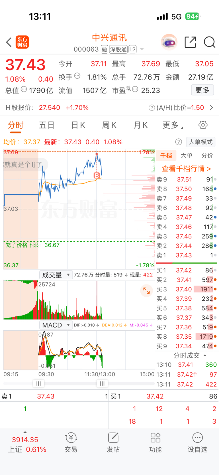 $中兴通讯(SZ000063)$ 买什么跌什么,认知还是有问题啊