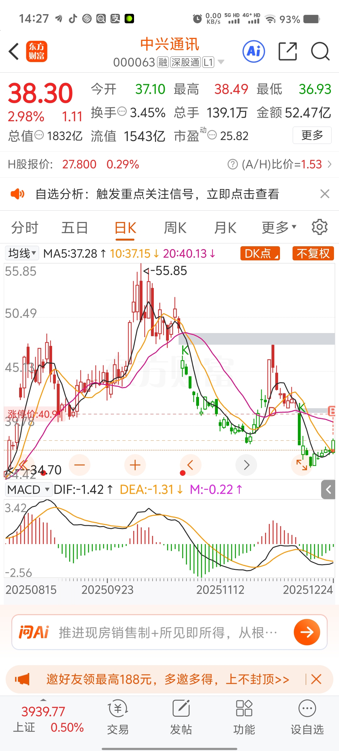 $中兴通讯(SZ000063)$ 盘子太大了,涨起来颤颤巍巍的,要是跌起来,真是一泻千里。