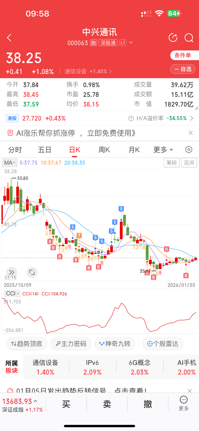 $中兴通讯(SZ000063)$ 不到 55,一分不卖!