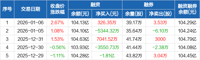 中兴通讯:融资净买入326.35万元,融资余额104.13亿元(01-06)