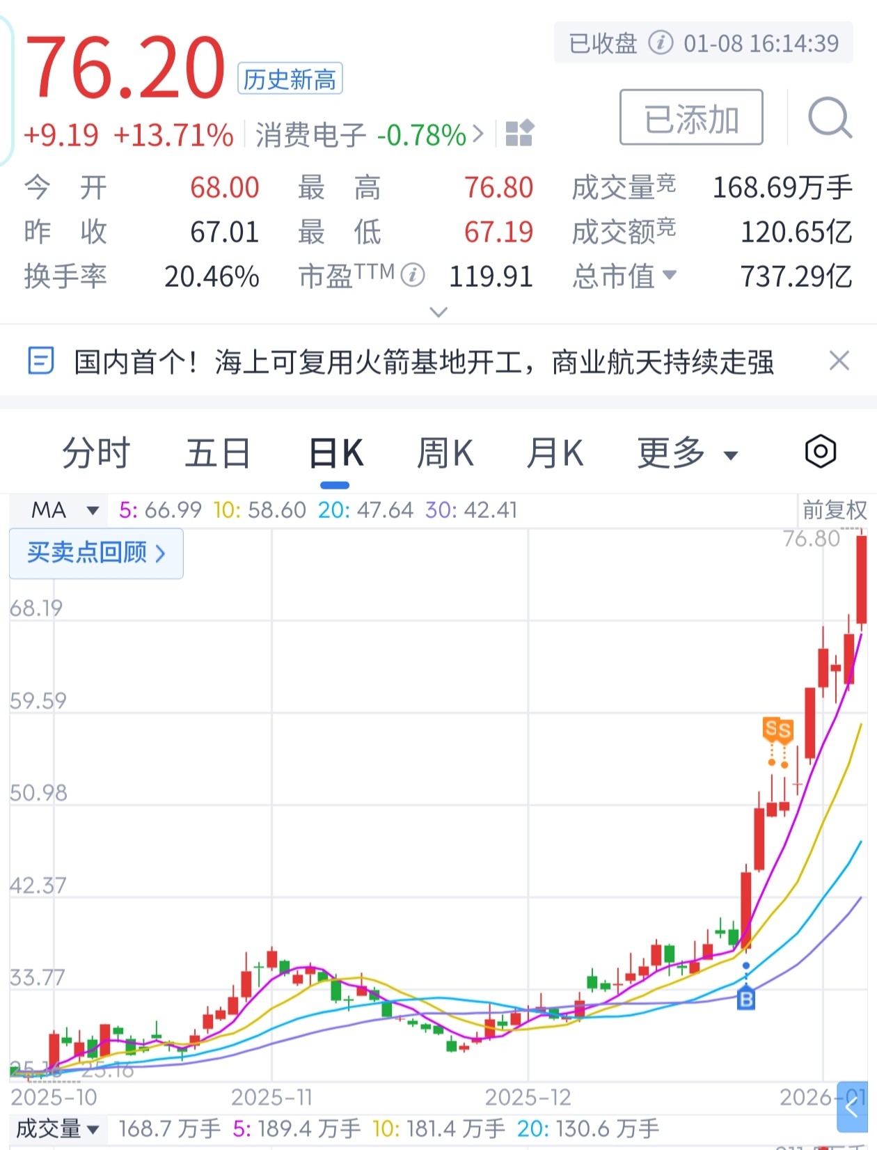信维通信进去吃了十多个点就跑了,没想到后面它连续涨了三四十个点,恐高真的是许多散