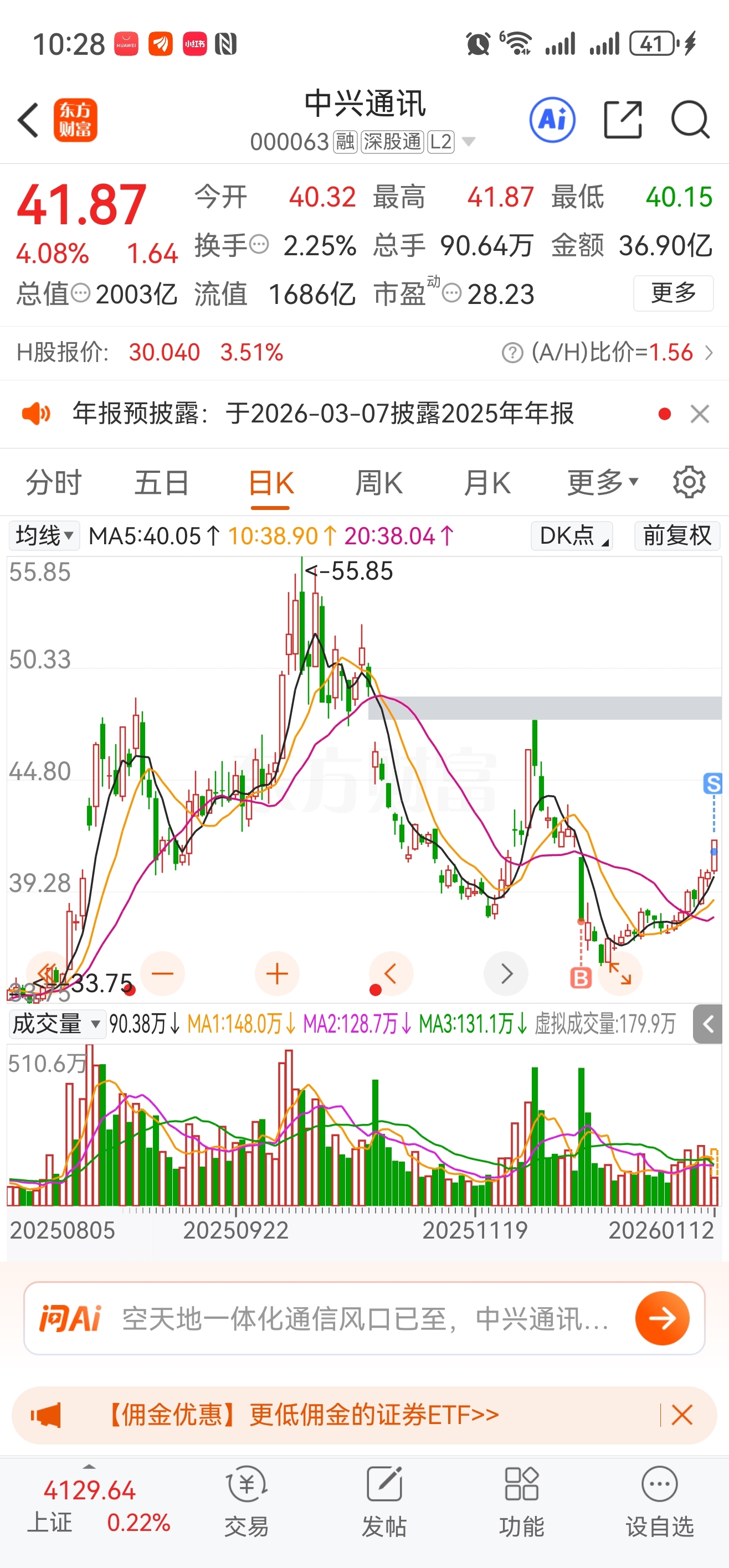 $中兴通讯(SZ000063)$ 认知有限,不配赚这个钱,我挂在补缺口41.23卖,以为补了会跌下来,结果直接起飞了。#炒股日记# #强势机会# #周度策略#