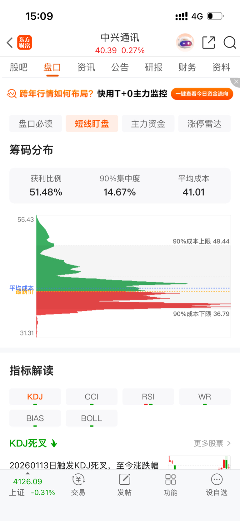 看看上下午筹码变化,远离均线筹码向均线换手,41的支撑越来越强,只等突破