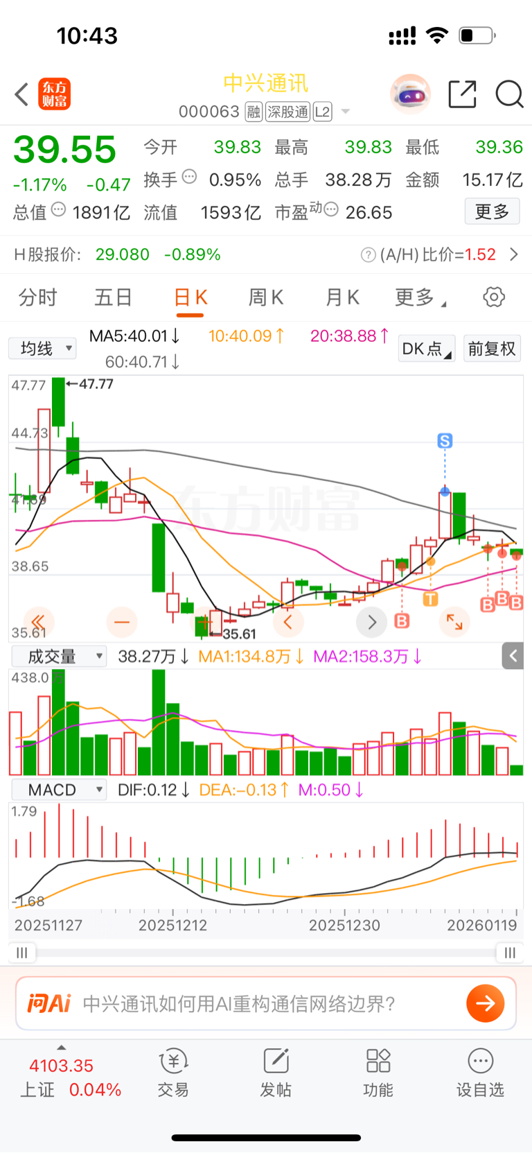 $中兴通讯(SZ000063)$ 还要洗好久,下午走了,反正赚了,难受,我是卖了亨通光电来买你的,烦死了,幸亏我留了中天科技,直至没有动,杂毛