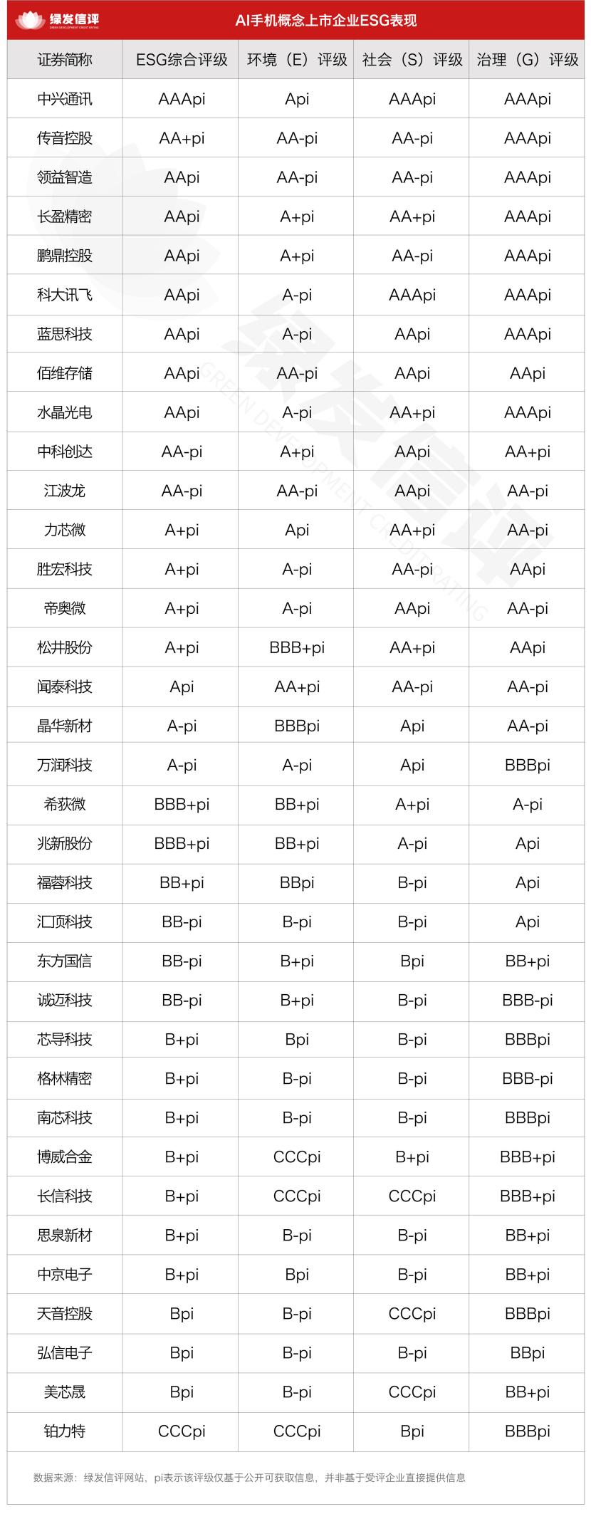 中国财富网讯当AI遇上责任,一场深刻的产业变革正在智能终端生态中悄然展开。作为人工智能与智能终端深度融合的核心赛道,AI手机不仅承载着科技创新、产业升级与消费体验革新的使命,更被赋予推动绿色、包容、可信发展的时代责任。近日,海南绿色发展信用评级有限公司(以下简称“绿发信评”)发布A股上市公司ESG主动评级结果显示,AI手机概念企业正站上可持续发展的新起跑线,通过强化技术合规、优化绿色生产、推动负责任的人工智能应用,系统性构建面向未来的责任竞争力。