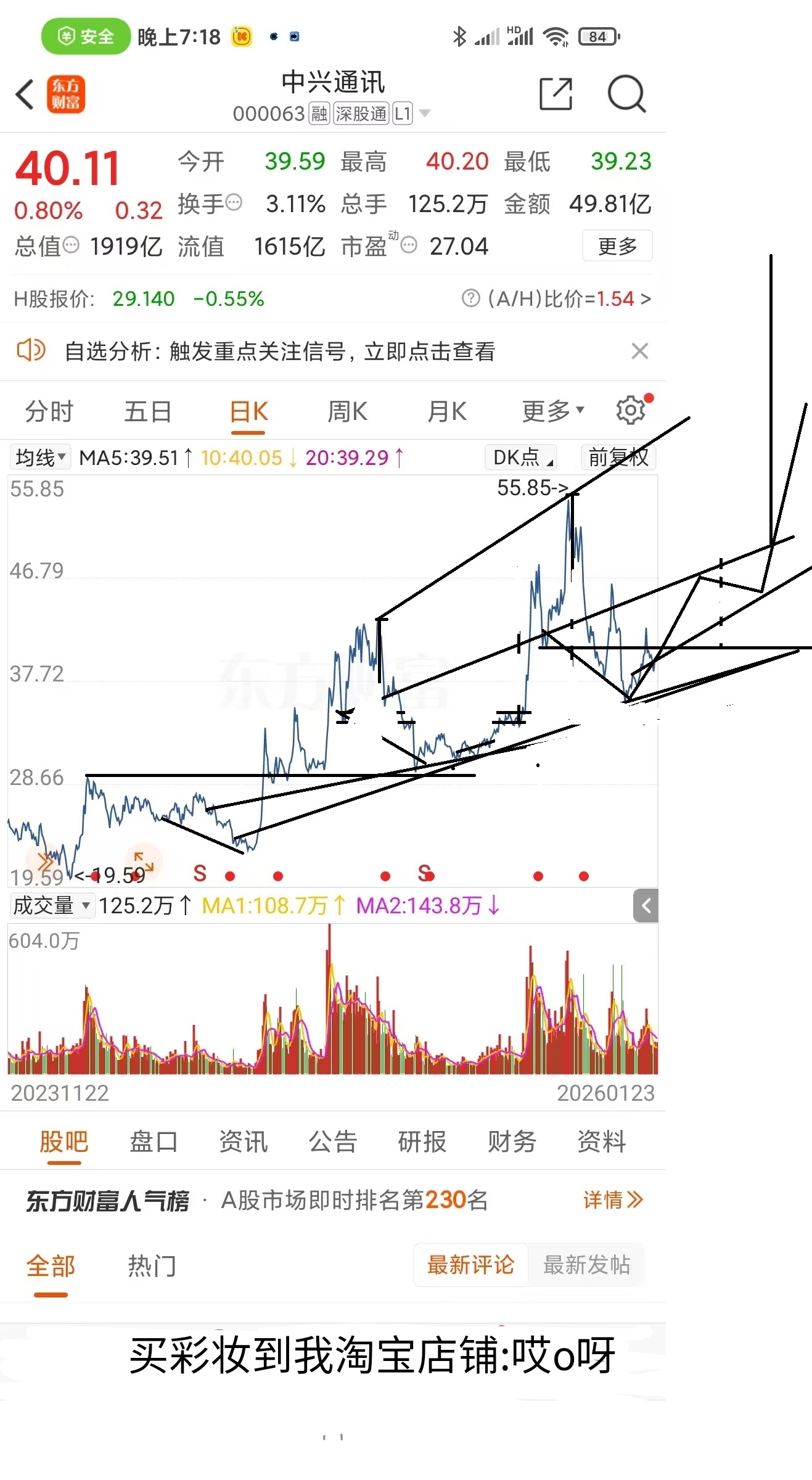 中兴通讯,重仓猛干,浮盈加仓,技术分析,一把亏光!趋势画好