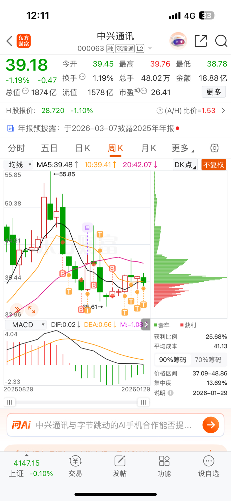 $中兴通讯(SZ000063)$ 准备销户了,不看软件了