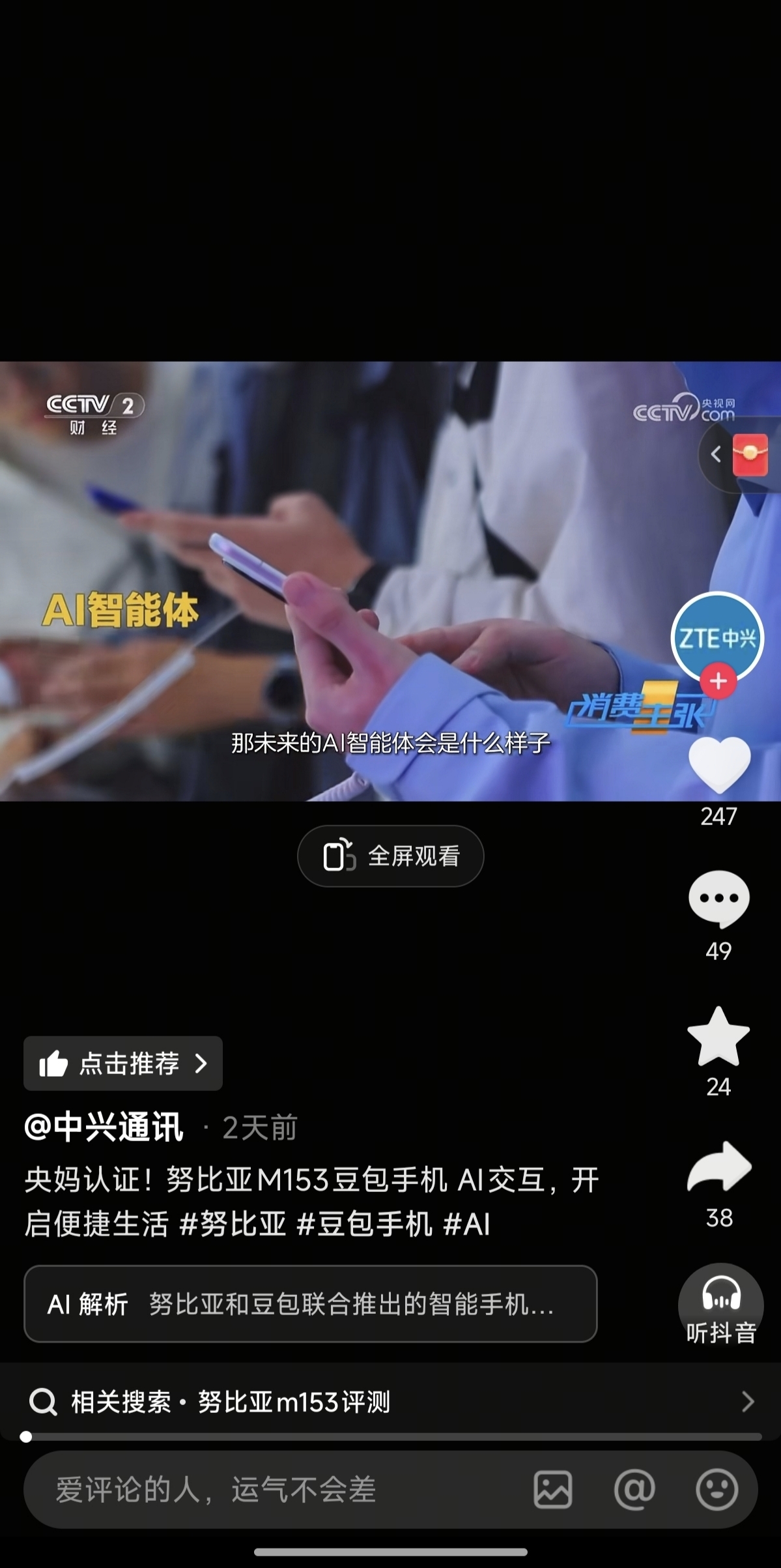 $中兴通讯(SZ000063)$ 卧槽,努比亚豆包手机上央视了