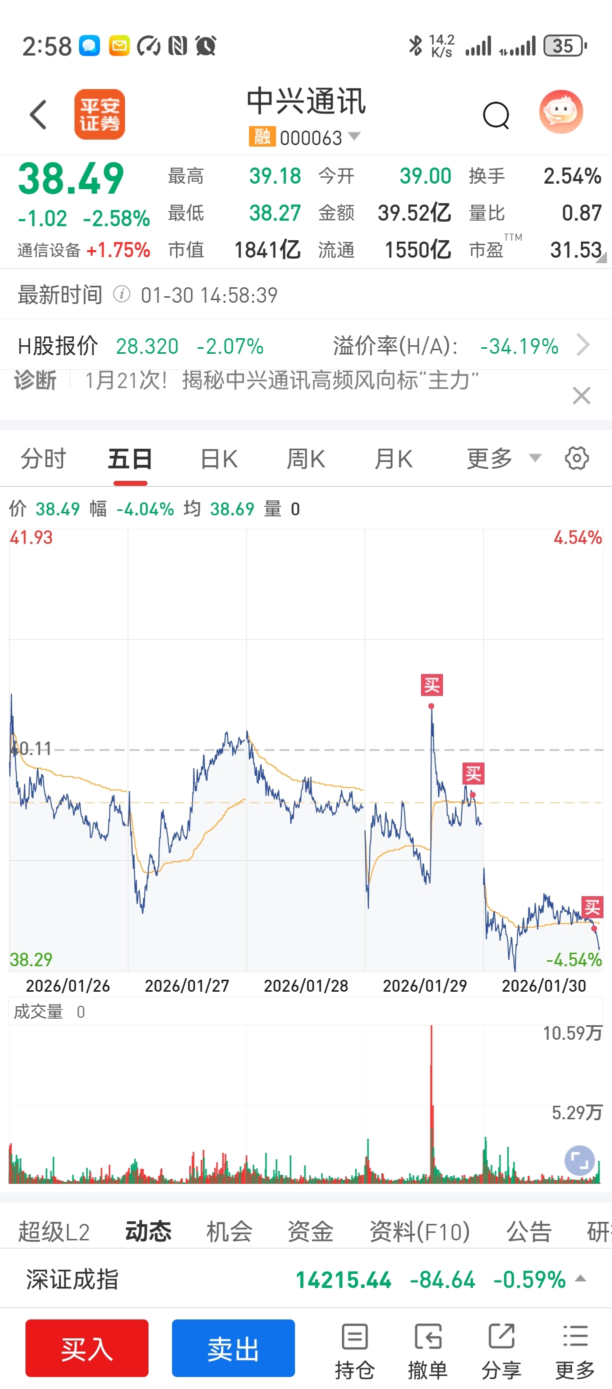 $中兴通讯(SZ000063)$ 教我如何不亏钱,但凡一买就开始跌