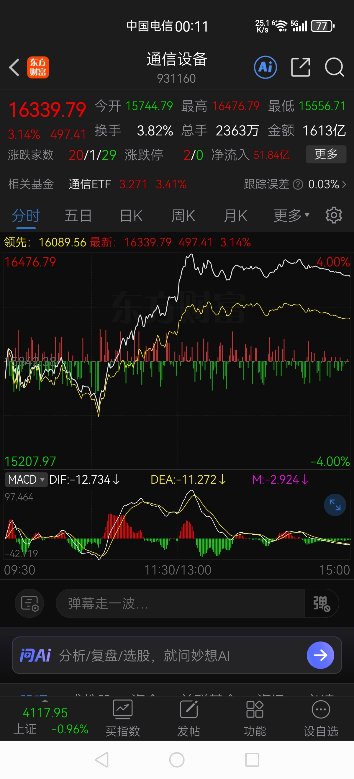 $中兴通讯(SZ000063)$ 为什么不涨,中兴通讯是不是通信设备板块?