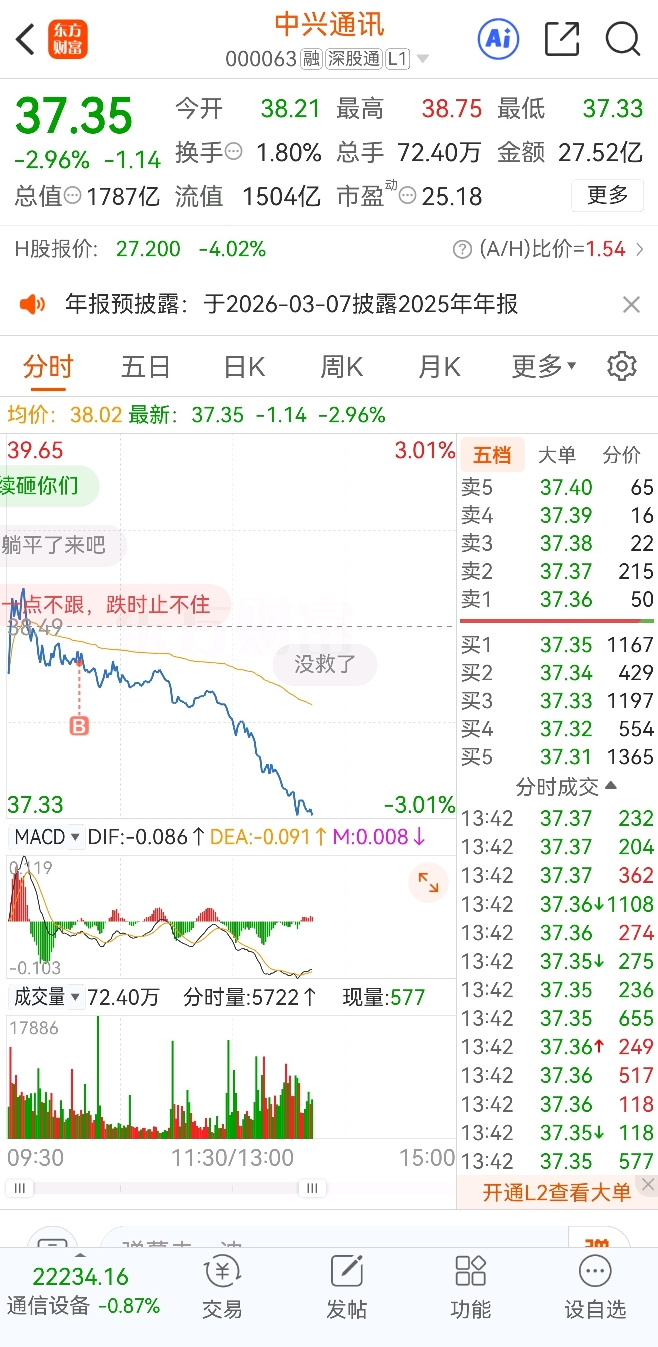 $中兴通讯(SZ000063)$ 崩溃了,一买就跌