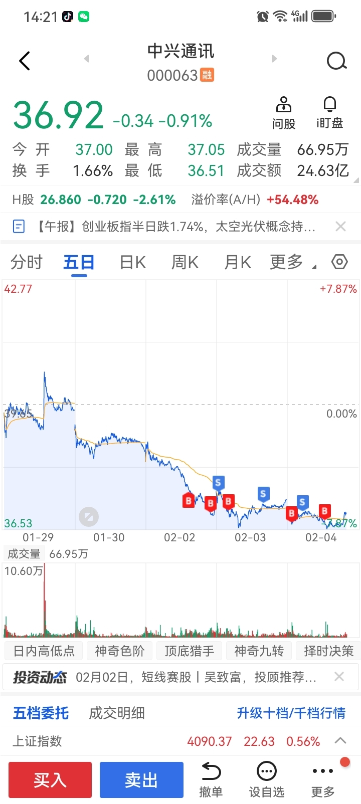 $中兴通讯(SZ000063)$ 37.5进场,到刚才进场成本控制到36.75,再T出成本降到36.6左右了,这条华仔赚的真累