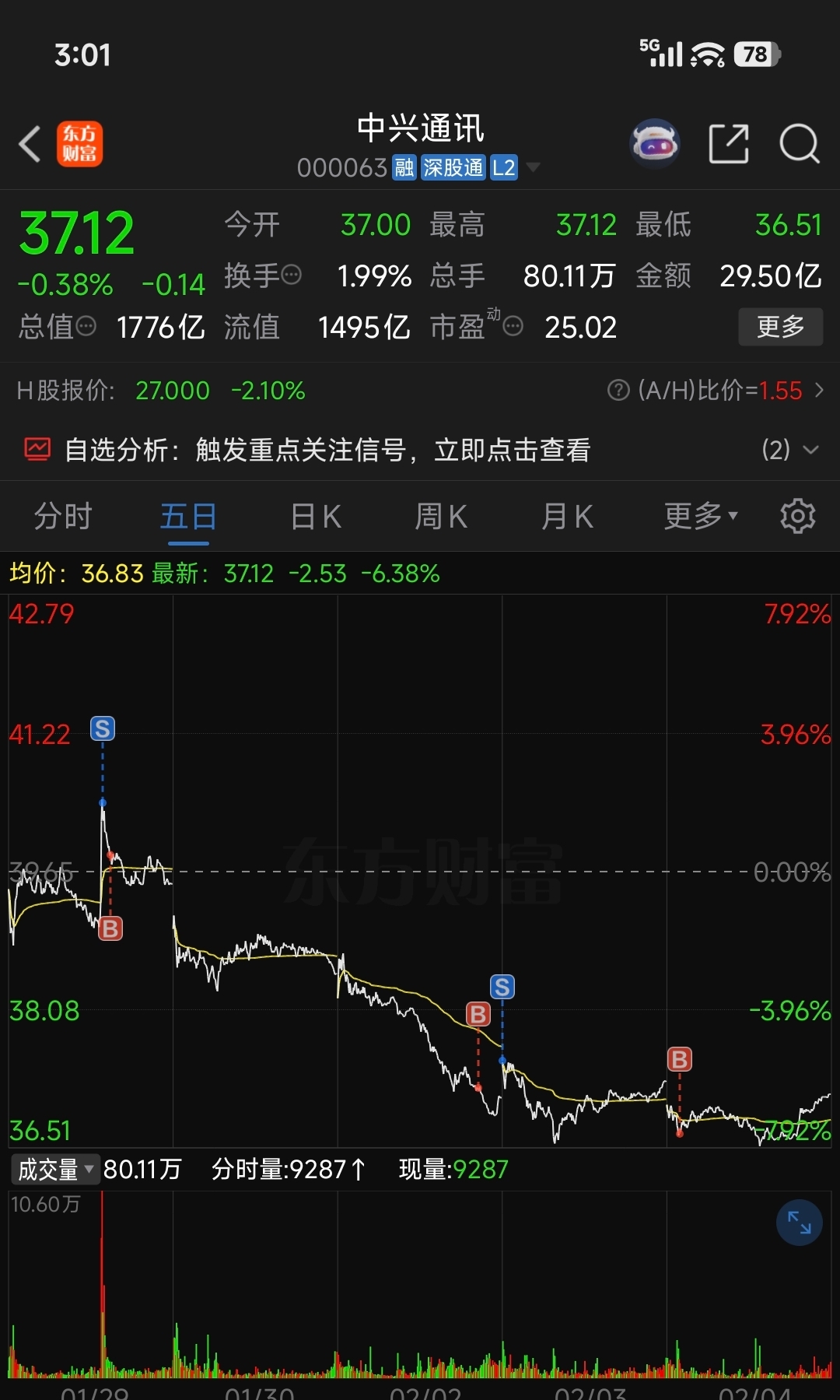 我容易么,那么能力的T,只因中兴情缘,并非那几个酒囊饭袋的高管,40的成本终于来到了37的区间,继续T——ing....