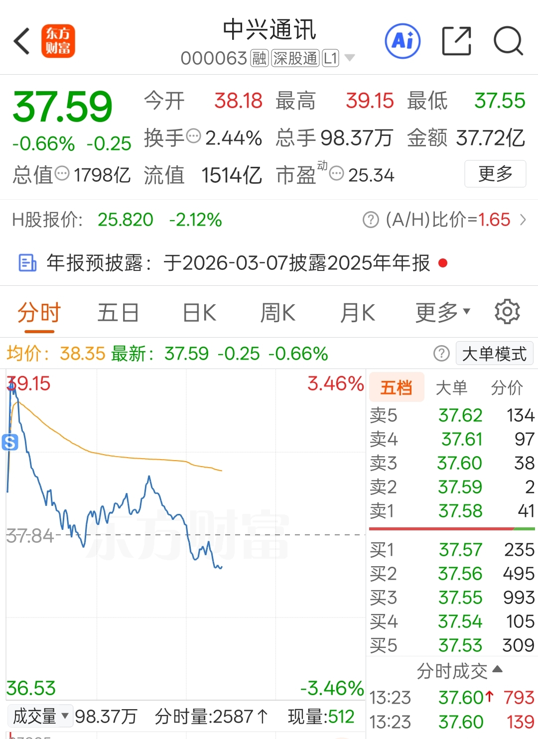 $中兴通讯(SZ000063)$ 早盘卖了你去了其他票,结果跌停