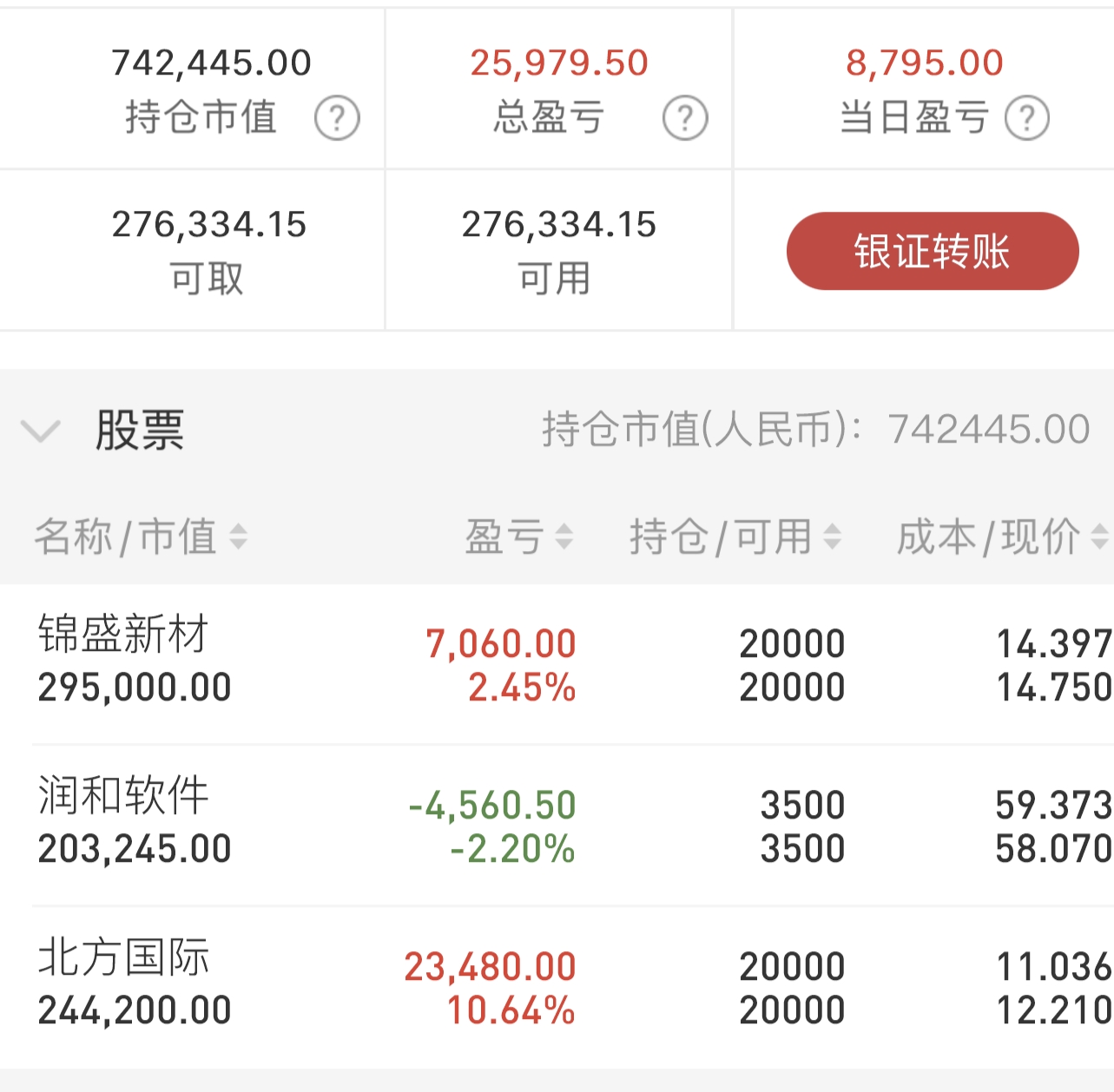 10.22记录北方国际,润和软件,锦盛新材不动。个人操作记录分享,不构成投资建议