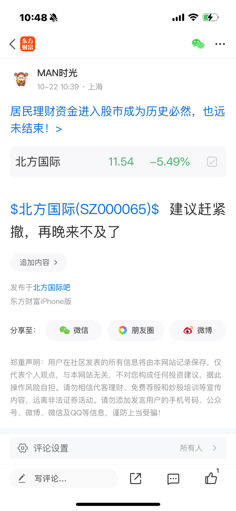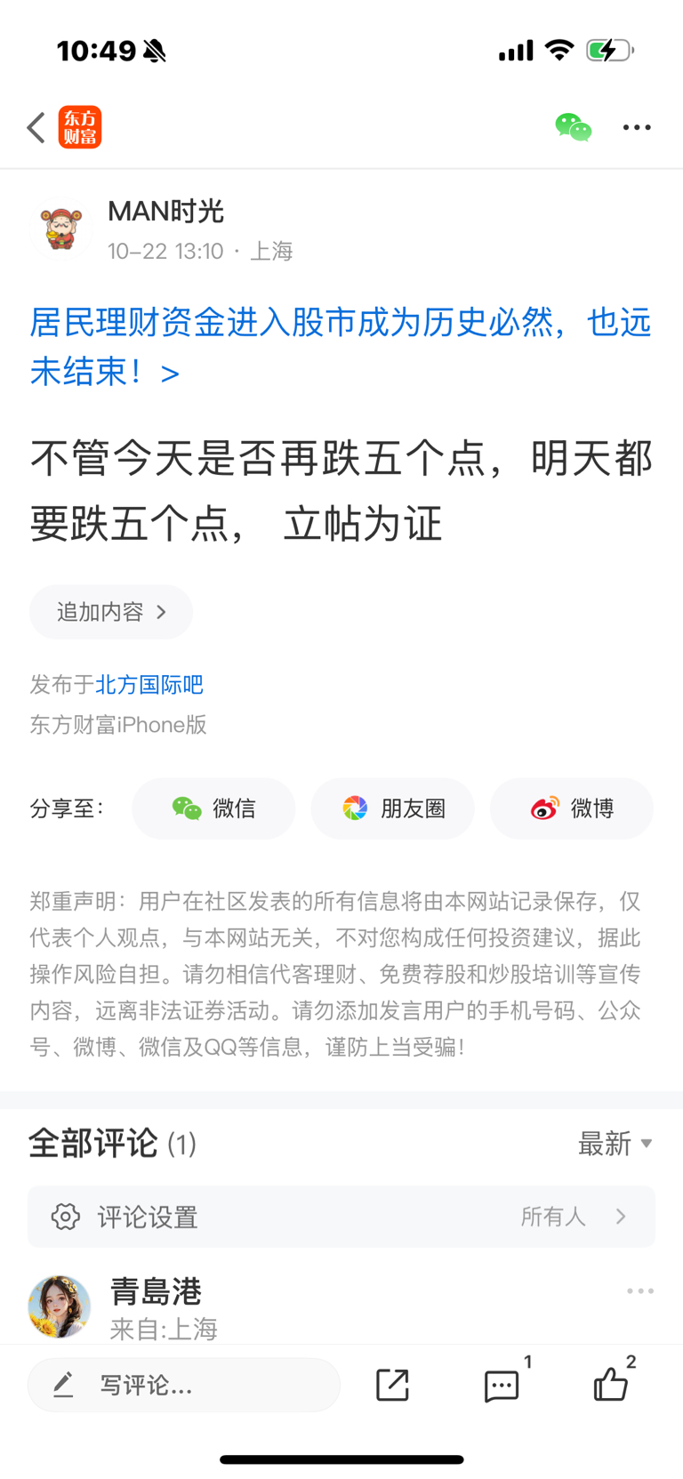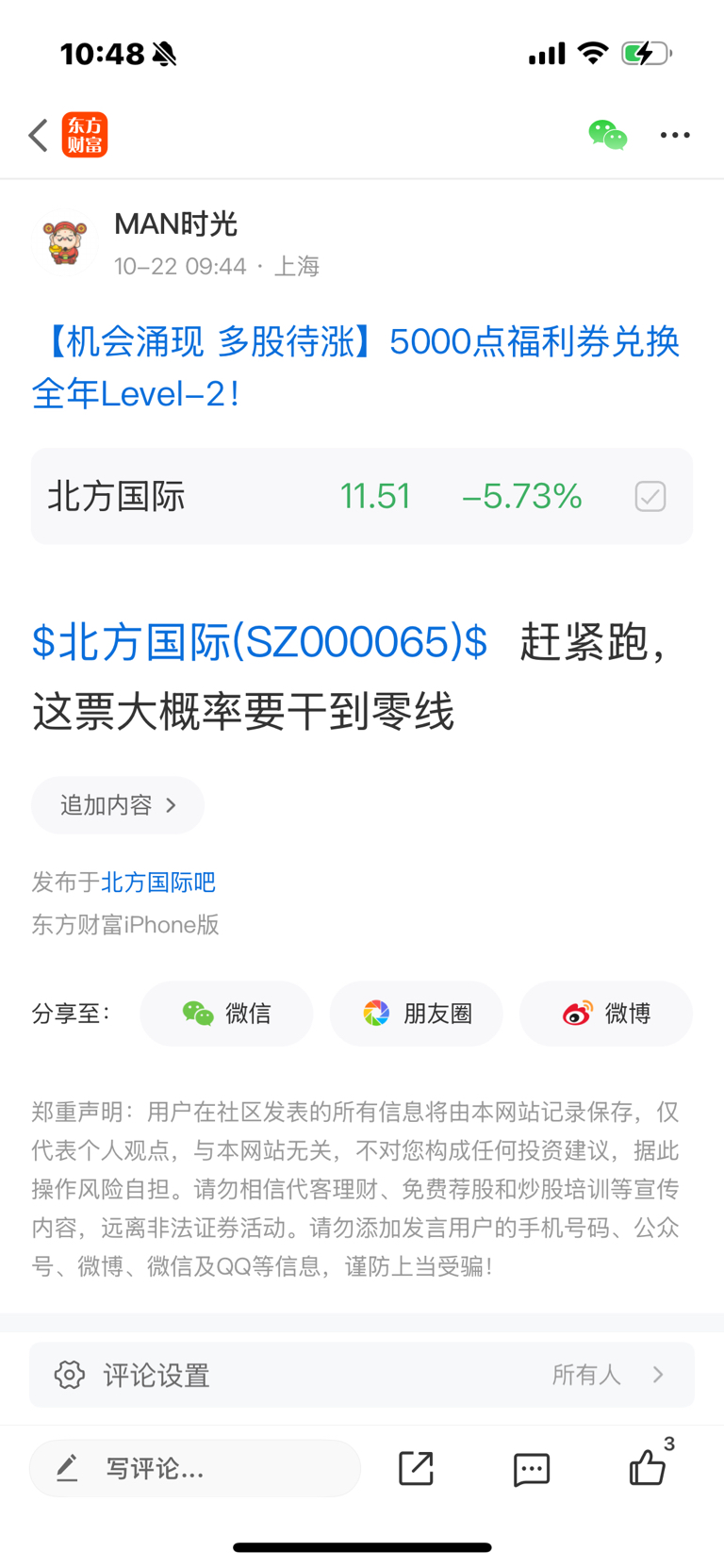 温馨提示: 1.根据《证券法》规定,禁止编造、传播虚假信息或者误导性信息,扰乱证券市场;2.用户在本社区发表的所有资料、言论等仅代表个人观点,与本网站立场无关,不对您构成任何投资建议。用户应基于自己的独立判断,自行决定证券投资并承担相应风险。《东方财富社区管理规定》