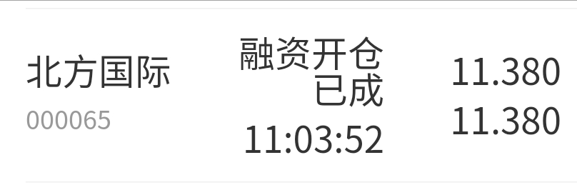 $北方国际(SZ000065)$ 早盘继续融资加仓,请关注我的老铁参考!!
