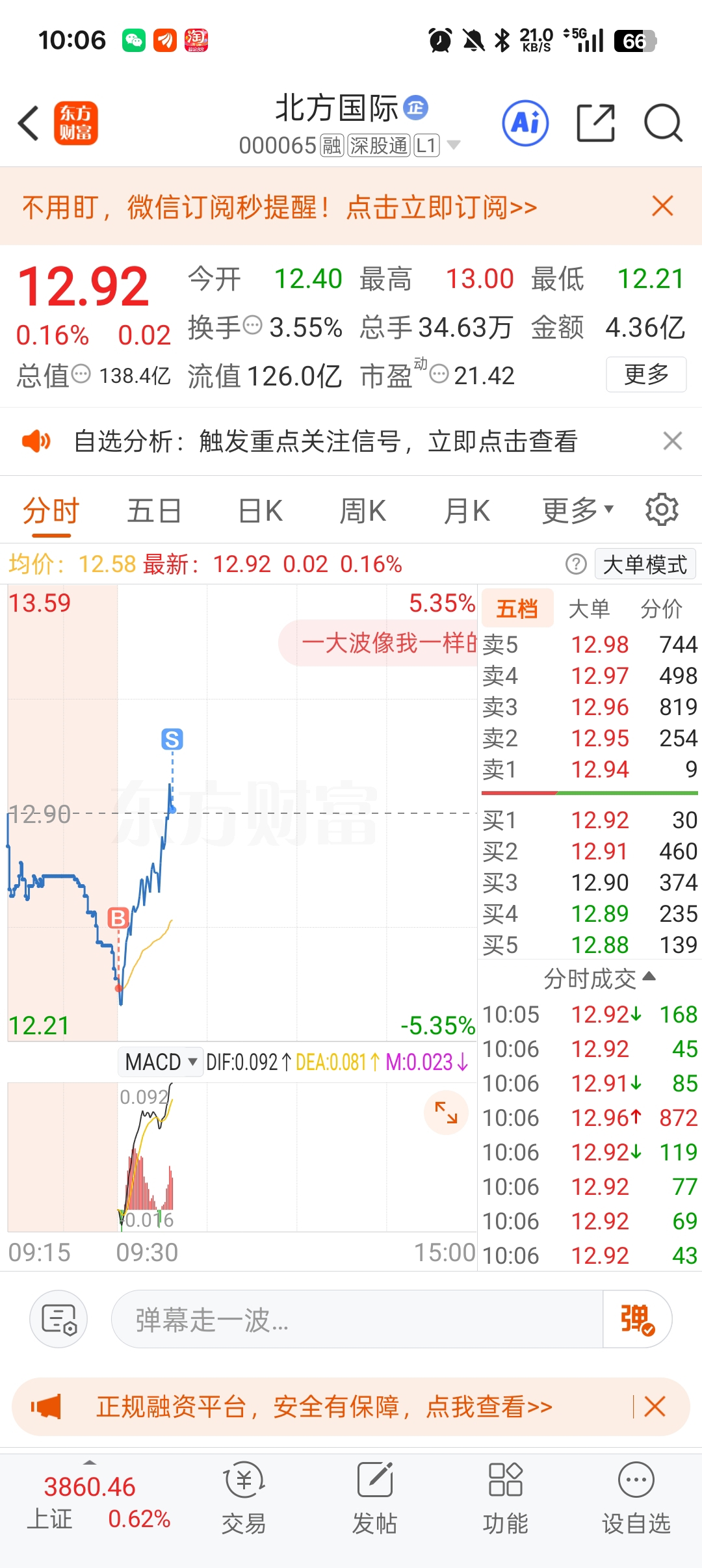 $北方国际(SZ000065)$ 先t一点