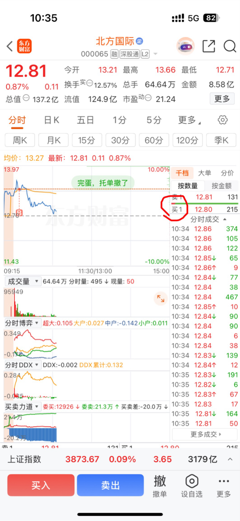 $北方国际(SZ000065)$ 天天二十几万挂卖悬在头上的垃圾,那点挂买的红色都快看不到了