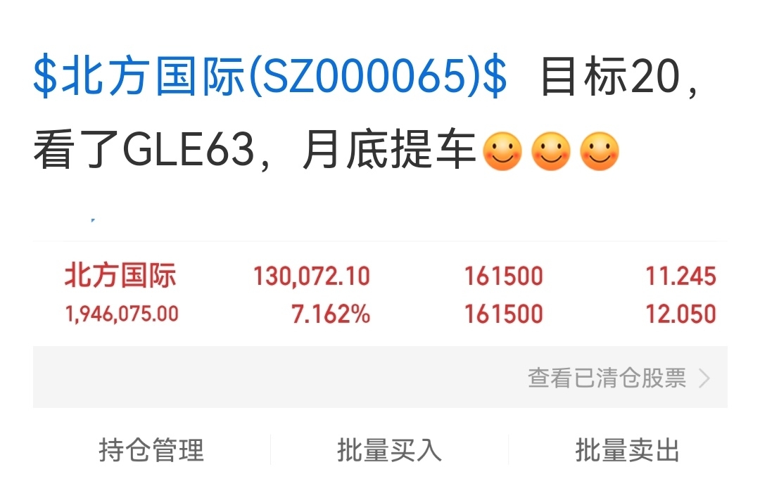 $北方国际(SZ000065)$ 兄弟们,跌破10日线了,这个月底提新车还抱有希望吗?