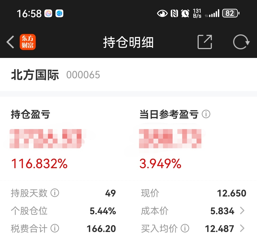 $北方国际(SZ000065)$ 仓位很低,成本也很低